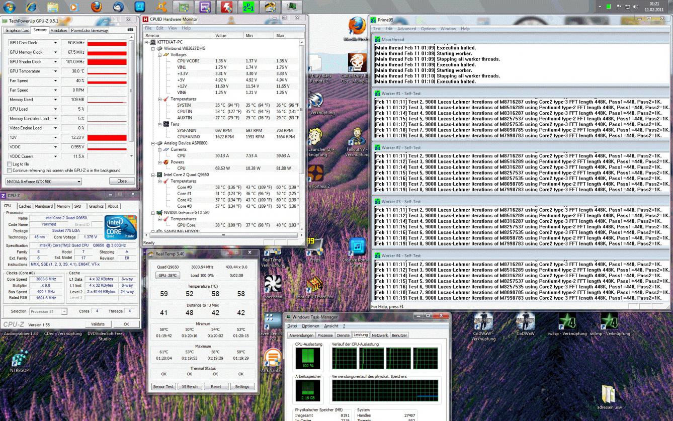 einem auf 9650@3.6 (Alphacool NexXxoS X2 Bold HIGHFLOW) einer 580gtx (aquagrafx) und nem chipsatzkühler+ einer HPPS Plus ,da komme ich im Idle(ok nicht ganz idle aber fast^^^) bei 24 Raumtemp