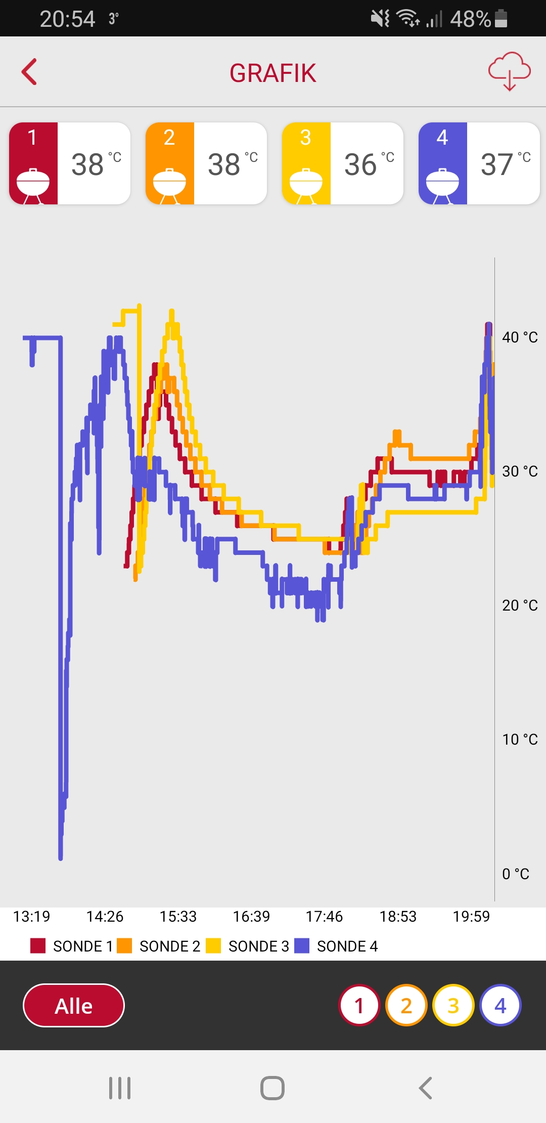 Die Temperaturen sind nach ausschalten des AVR direkt wieder um fast 10 Grad gestiegen, da der Lüfter aus war und die Restwärme vorhanden