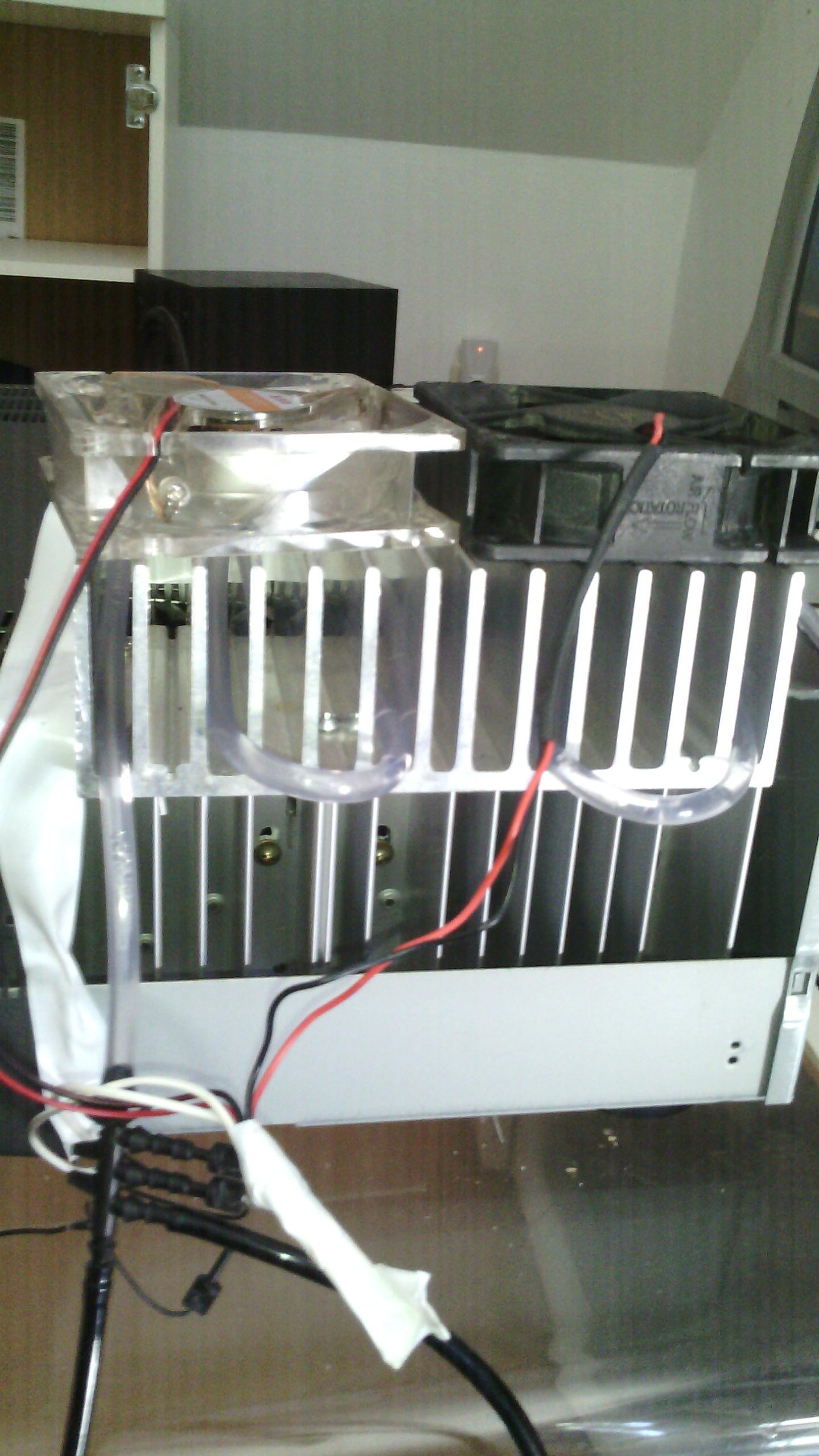 Habe ein projekt angefangen was aber nicht viel mit Computern zu tun hat. Jedoch glaube ich das ihr mir helfen könnt. Es geht um Folgendes: Habe eine ältere Musik Anlage die aber nach ca.20 minuten voll belastung ziemlich Heiß wird meine idee ist das ich einen dünen schlauch zwischen die kühlrippen lege und da ohne eine pumpe wasser durchlaufen lasse. Meine idee dazu den shlauch in einen behältef unten durch ein loch und das andere ende oben durch ein loch dadurch das das wasser unten raus geht das ein vakum entsteht und das wasser oben wieder reinfliest.