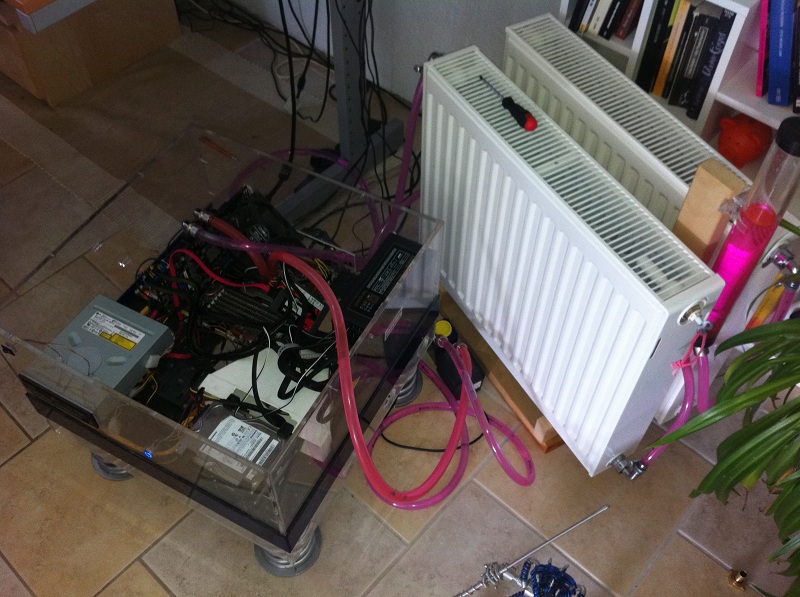 Ich benutze Frostschutz aus dem KFZ bereich, benutze ich schon seit Jahren in meinem System, kein Rost im Wasser - perfekt. Hoher Frostschutz ist damit kein Problem udn wenn ich bei der Idee des Zweikreissystems belibe, dann kann sogar was kapitt gehen ohne, dass mein inner Wasserkreis und somit mein PC in mitleidenschaft gezogen wird. Der Platz für den Heizkörper aussen ist schattig und überdacht und wenn der Heizkörper irgendwann rostet, dann soll er, bis der durchgerostet ist, habe ich schon wieder ander Ideen und bastle sicher schon am nächten Projekt, ausserdem kostet so ein Heizkörper €30,--.