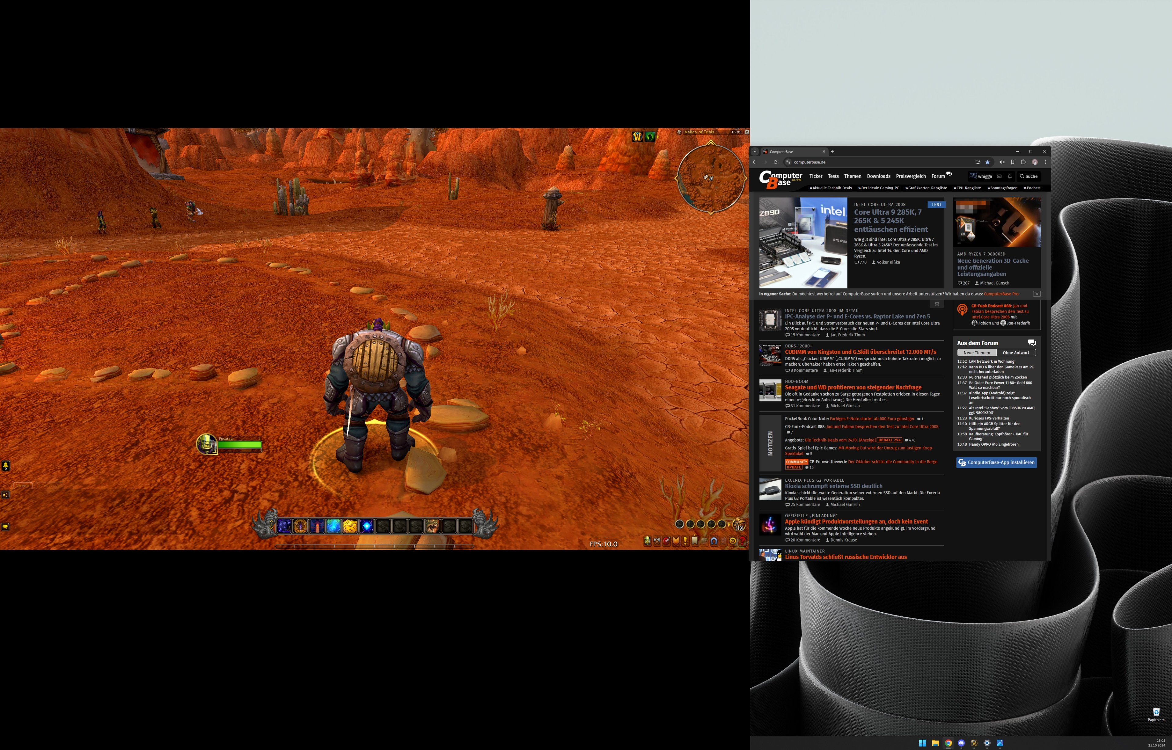 ich spiele Seit jeher WoW auf dem ViewSonic Monitor (Borderless Windowed, Vordergrund-FPS 119, Hintergrund-FPS 60). Auf dem zweiten und dritten Monitor habe ich dann soweit alles andere laufe gehabt, meistens Chrome, Discord und Spotify. Seit gestern habe ich folgendes Problem: Sobald ich aus WoW raustabbe bzw. ein anderes Fenster fokussiere, sinken die FPS in WoW auf genau 10FPS ab (und nicht wie bisher auf 60).