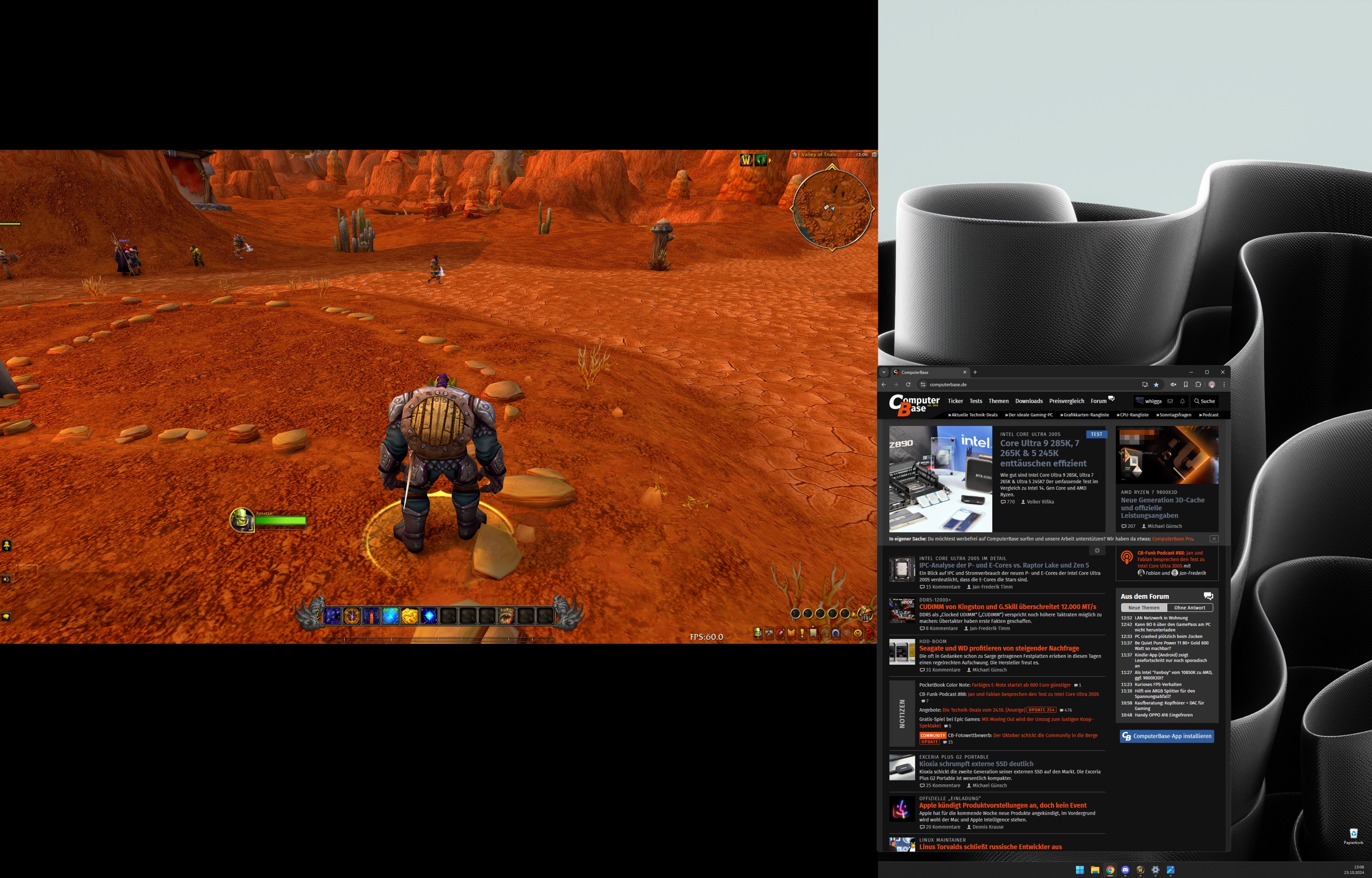 Dies geschieht allerdings NUR, wenn ich direkt auf das andere Fenster klicke. Klicke ich vorher auf den leeren Desktop und dann auf Discrod, bleiben die FPS auf 60. Weitere Einschränkung (und was mich ratlos macht): wenn ich Discord so verschiebe, dass ein paar Pixel entweder auf meinen Hauptmonitor oder alternativ "ins Leere" ragen, kann ich auch direkt ins Fenster klicken, und die FPS bleiben gleich.