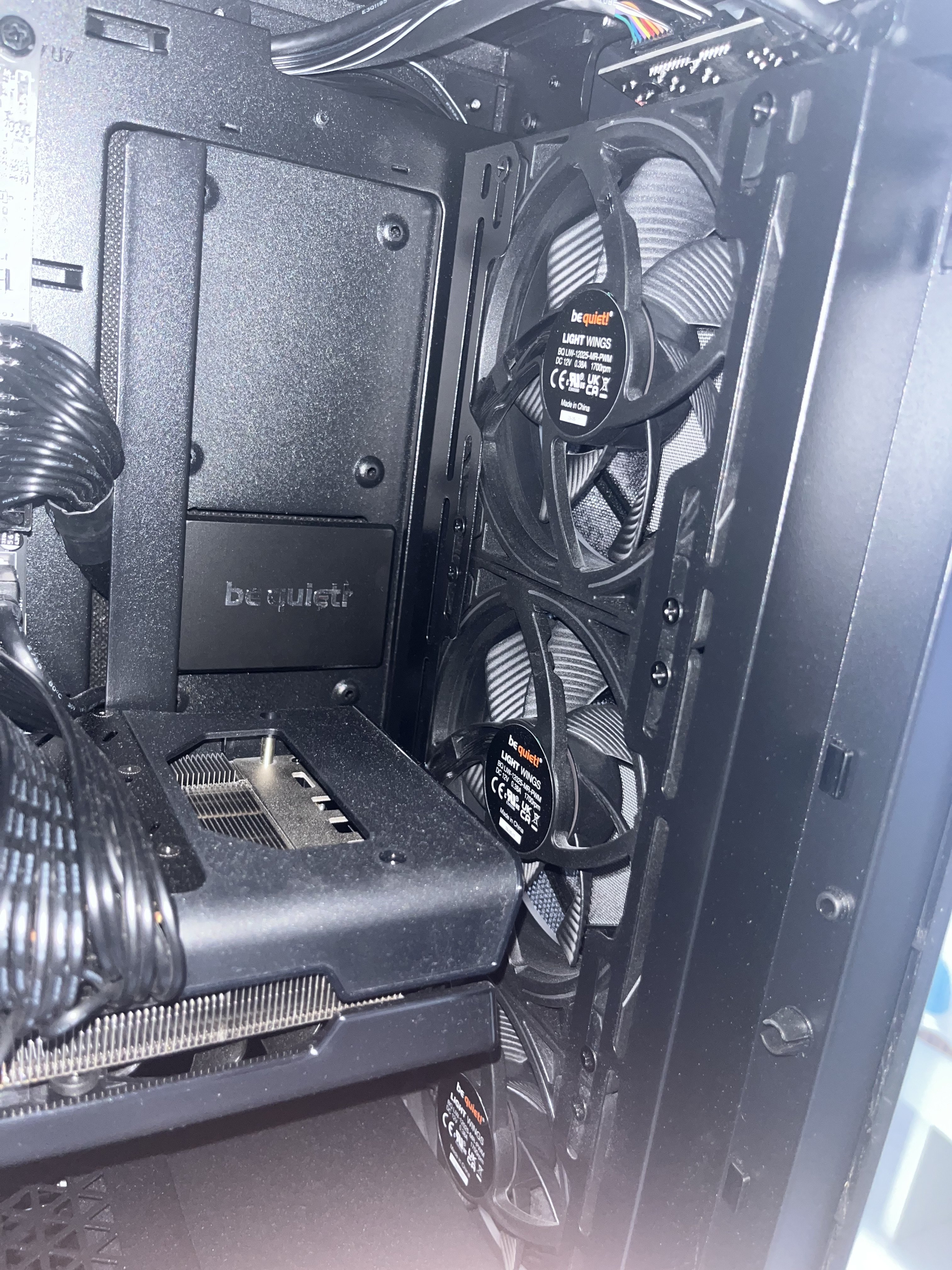 Der Kühler von der CPU zeigt in die Richtung wo es kühl ist, also nicht zur Rückseite.