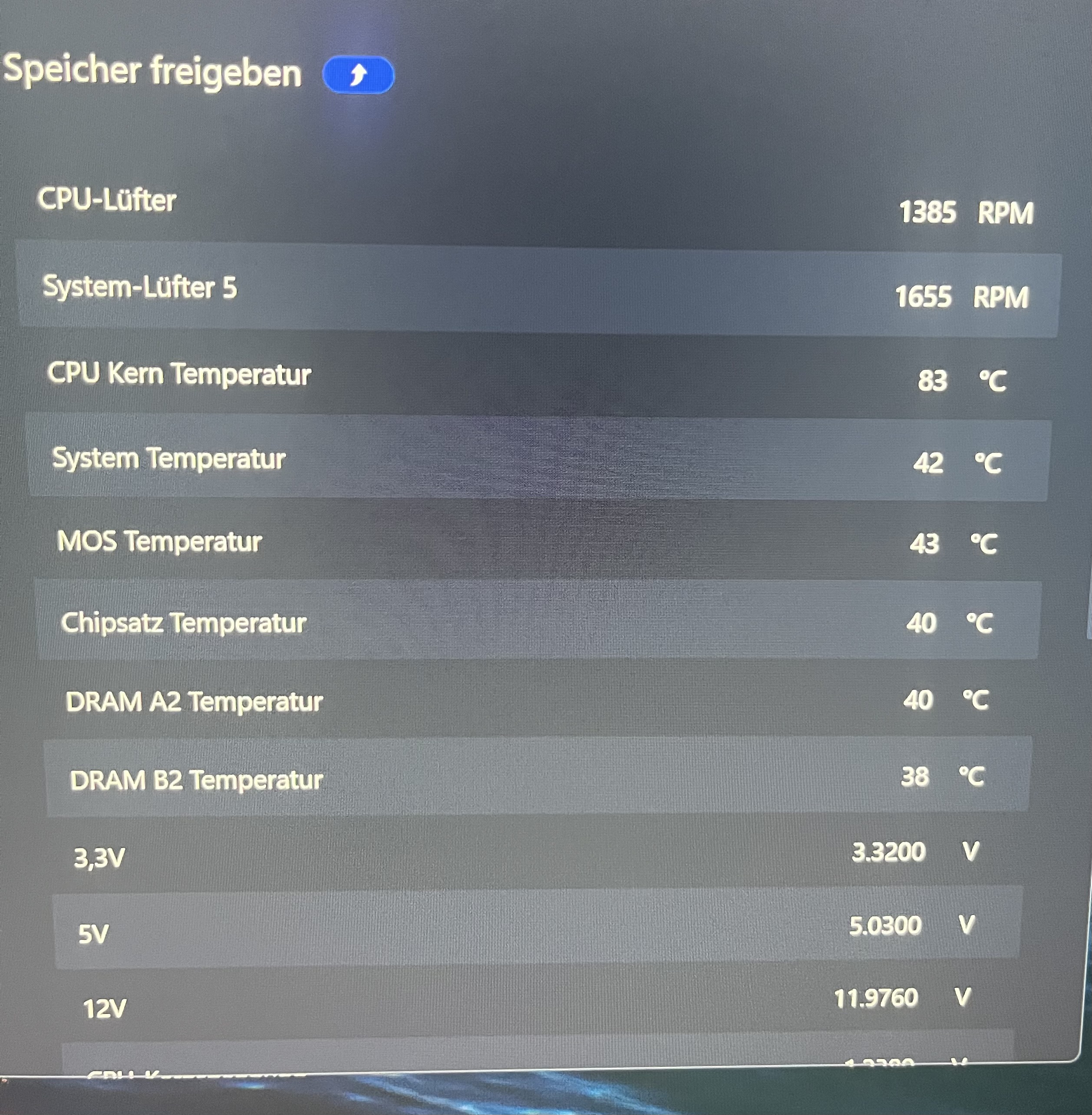Hab jetzt alles auf maximale Geschwindigkeit gestellt dennoch geht die CPU auf 80-85 grad bei einer 60-75% Auslastung