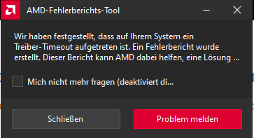 Von der Amd Software ist die Meldung gekommen: "Treiber timeout".