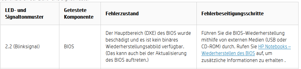Nach HP blink Codes googeln.... Und die Reihenfolge der Codes aufschreiben... Dann kann man schauen ob noch was zu retten ist... Ggfs BIOS reflashen...