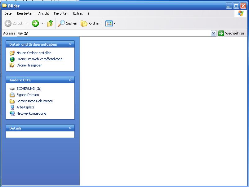 Hier ein Bild eines Freezes (erkennt man daran, dass links die "Details" nicht eingeblendet sind, der Ordner "Bilder" ist nicht leer).