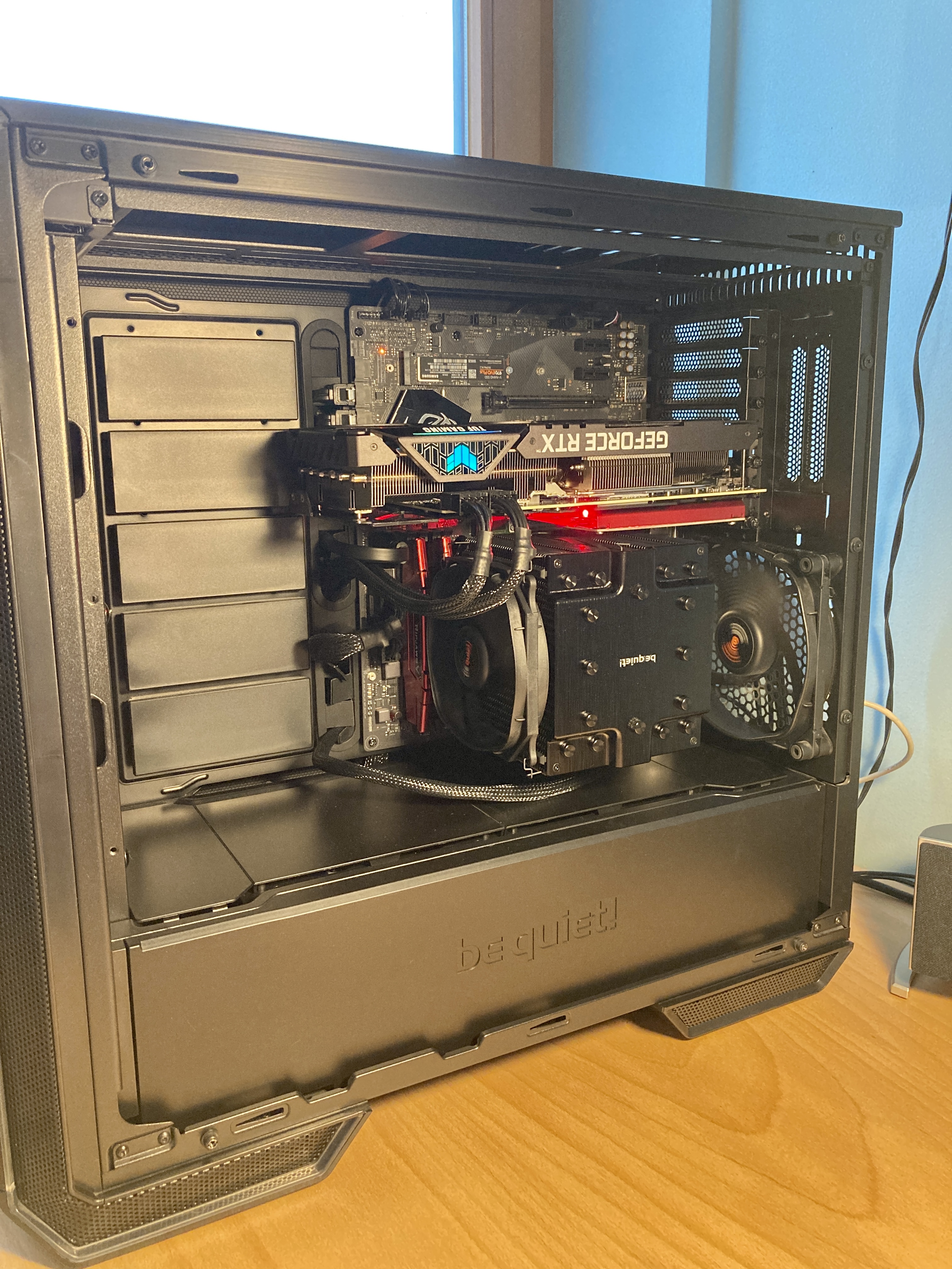 Meine Workstation hausiert in einem be quiet! Dark Base 700 und ich hatte eigentlich die Hoffnung (ungerechtfertigt, wie sich herausstellte), dass ein größerer Midi-Tower in diesem Segment keinen Hitzestau verursachen sollte - falsch gedacht.