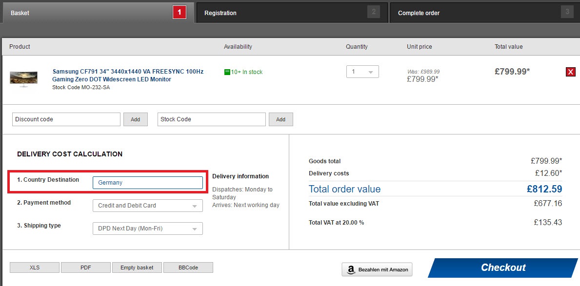 Die haben wohl Export deaktiviert. Wenn man nämlich sofort auf Germany klickt und keine Liefermethode wählt bleibt das Feld Liefermethode leer. Es gibt kein Dropdownmenü mehr.