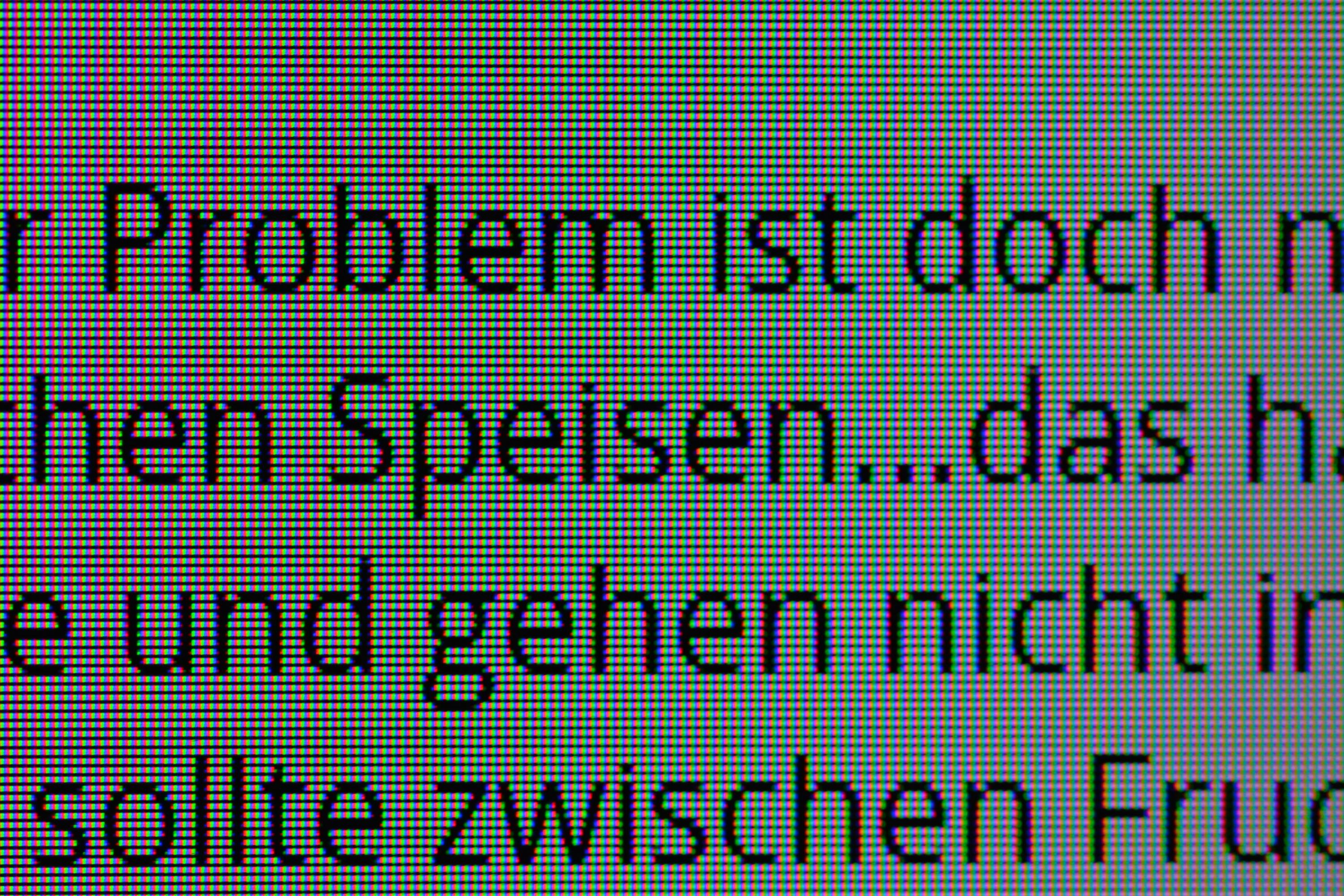 Ich habe Mal mein Makro ausgepackt und Bilder von Stellen aufgenommen, an denen mir die Schrift nicht gefällt. Ist nicht überall so schlecht. Hier auf CB habe ich ein klares Schriftbild, ebenso auf Focus.de. Am meisten ärgere ich mich bei Outlook und Word über ausgefranste Passagen, aber es scheint nicht am Monitor zu liegen, sondern an der Skalierungsfähigkeit einzelner Anwendungen..