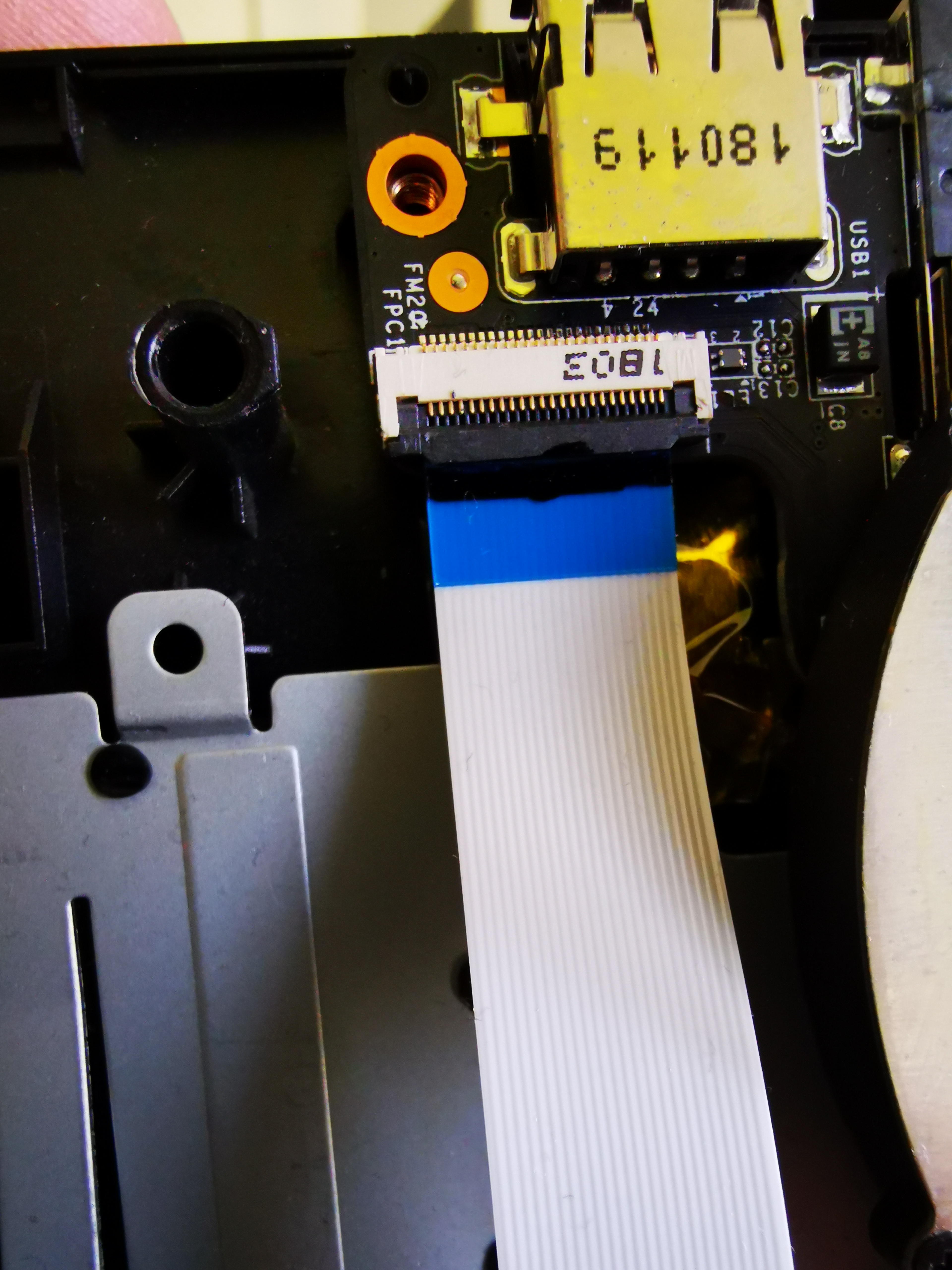 Ich würde gerne mal den betroffenen USB Port vom Mainboard abklemmen, bekomme aber das Flexkabel nicht ab.