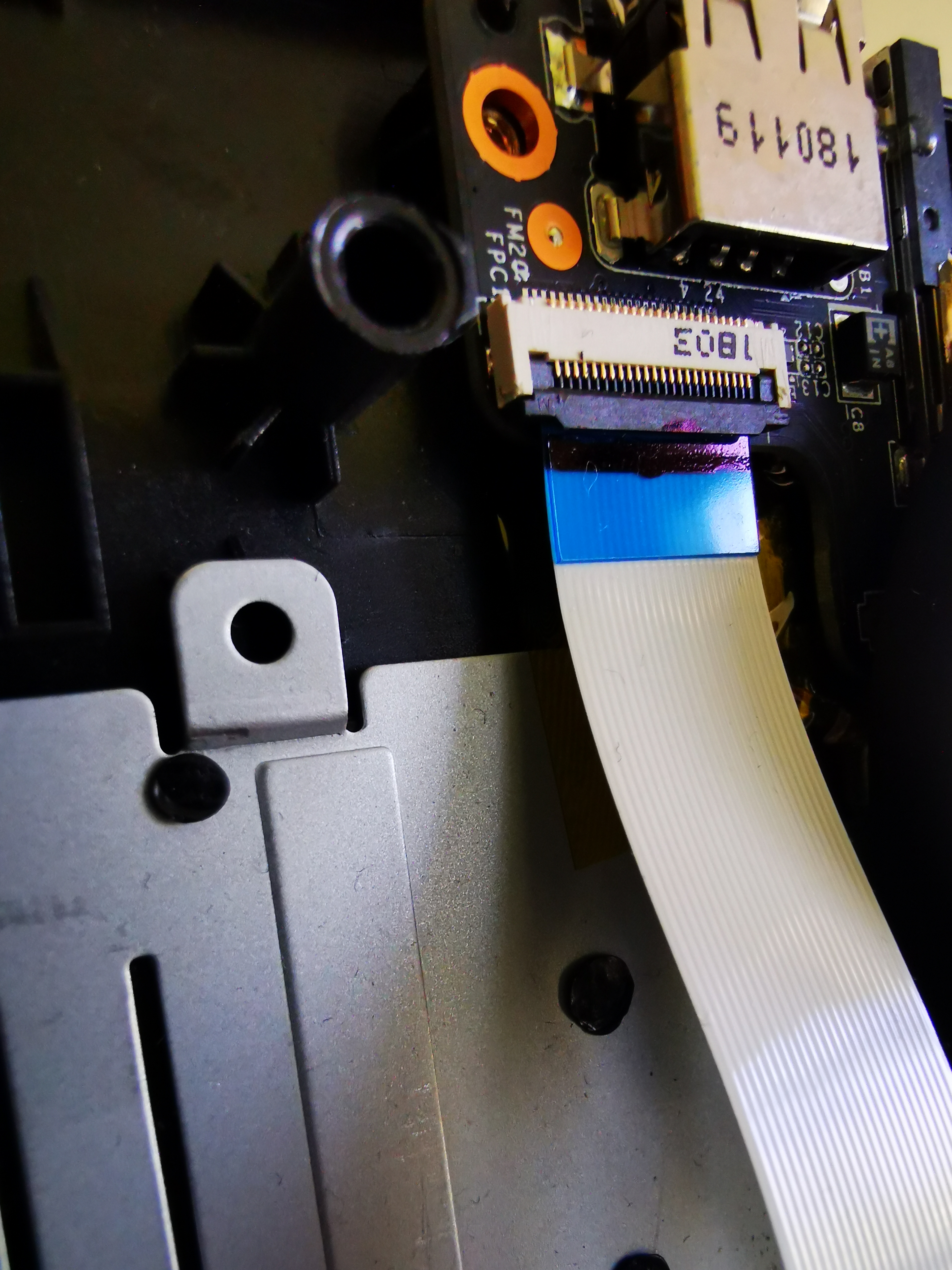 Wenn du den Rechner offen hast, mach mal ein Foto von dem Flexkabel. Es gibt eigendlich immer einen Trick die zu oeffnen, solange die nicht angeloetet sind.
