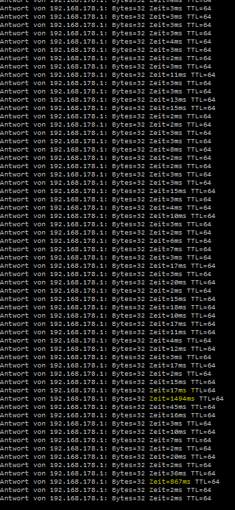 Leider tritt zufällig alle 10-20 Sekunden eine Ping-Spitze (800ms bis 1500ms oder sogar komplett Zeitüberschreitung) auf. Diese äußert sich vorallem in Skype oder Onlinespielen, was beides fast unmöglich macht.