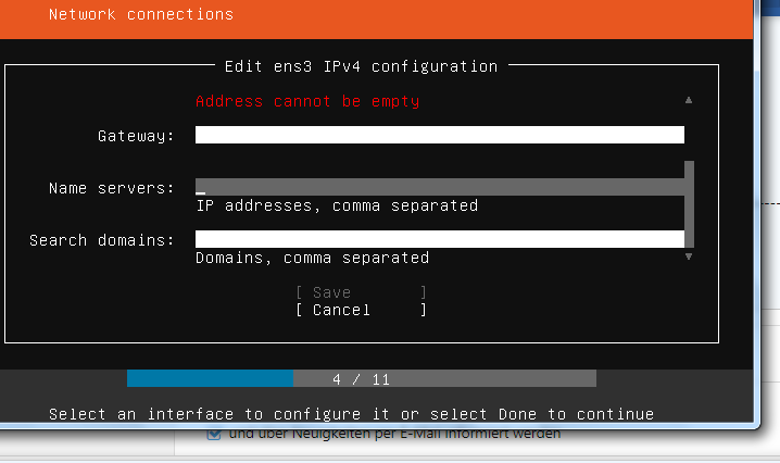 Die Installation Startet wunderbar wie gewohnt, aber bei Network connections habe ich Probleme mit der Auto Erkennung der IP-Adresse und weiteren Einstellungen und Eingaben. Die Angaben meines Providers weichen von den erforderlichen Vorgaben des Programms ab, ich kann die einzelnen Angaben nicht zu Ordnen