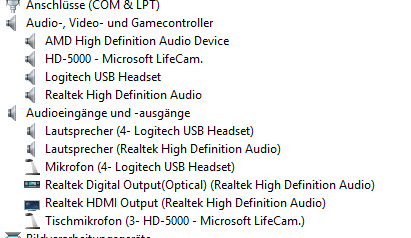 Mittlerweile bekomme ich aber auch keinen Sound mehr über das Logitech Headset (USB).