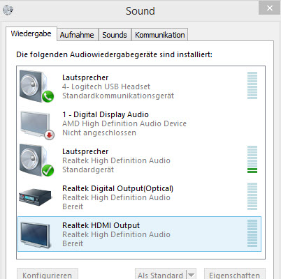 Ich bekomme auf beiden PCs keinen Sound mehr, kann machen was ich will. Seltsamerweise passierte dasselbe bei beiden Geräten: nach der ersten Nacht war der Sound weg. Ich weiss nicht ob es ein Problem mit dem Monitor-Standby ist (hab sowas gelesen, HDMI geht nicht nach Monitor-Standby), aber a) betrifft es bei mir nur den Sound, und der ist nicht im Monitor integriert bzw. angeschlossen, und b) hat der Monitor kein HDMI, sondern DVI-Anschluss. Ich verwende einen DVI->HDMI-Adapter. Bild ist kein Problem.