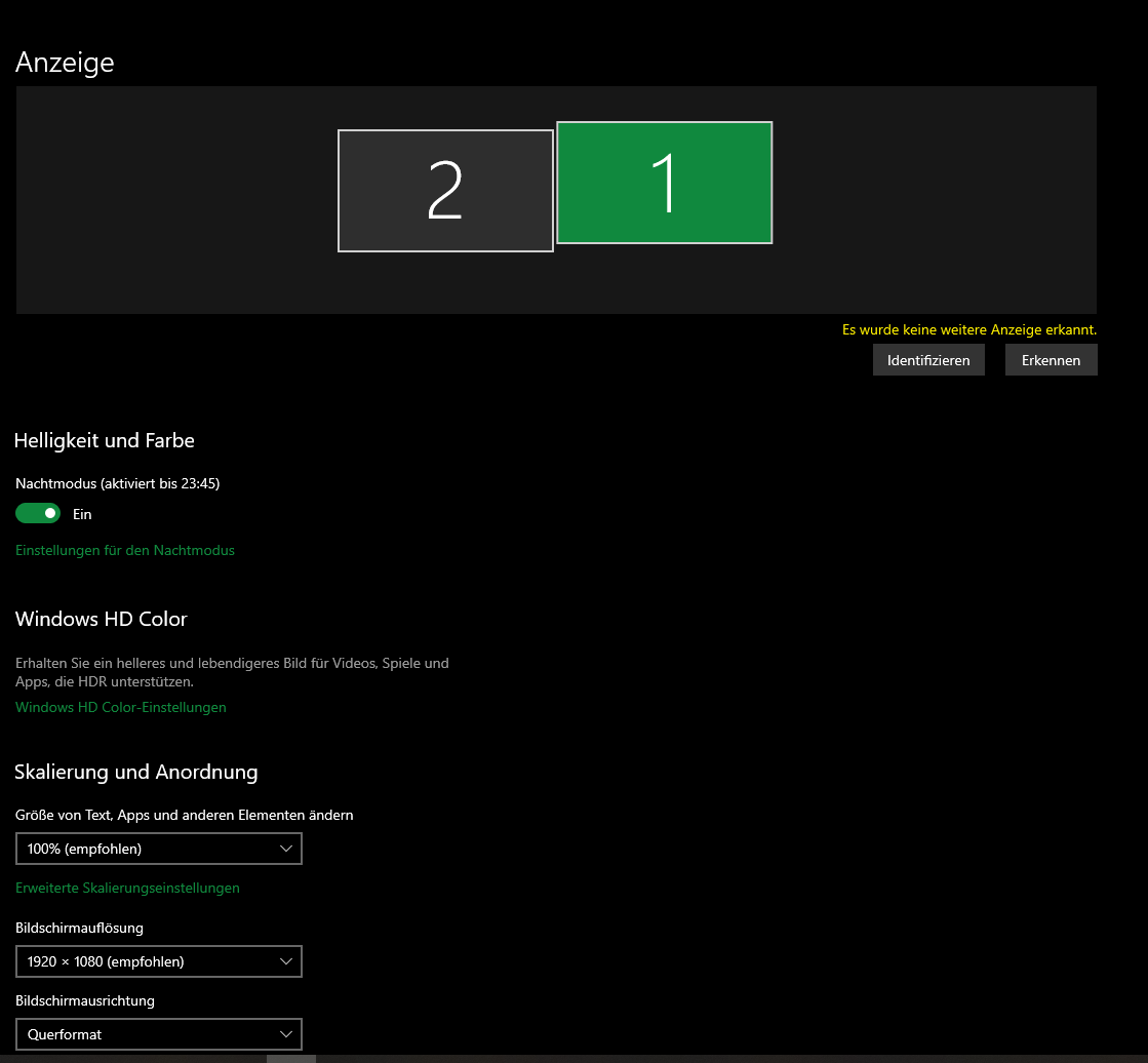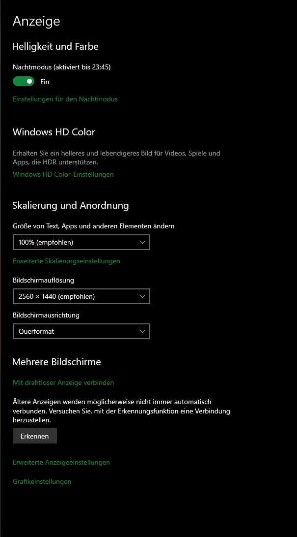 Nun habe ich mir gedacht, vielleicht regelt der zweite (ältere) Monitor das Gesamtsystem runter? Der hat definitiv kein WQHD. Aber eigentlich kann man doch beide Anzeigen getrennt voneinander einstellen.