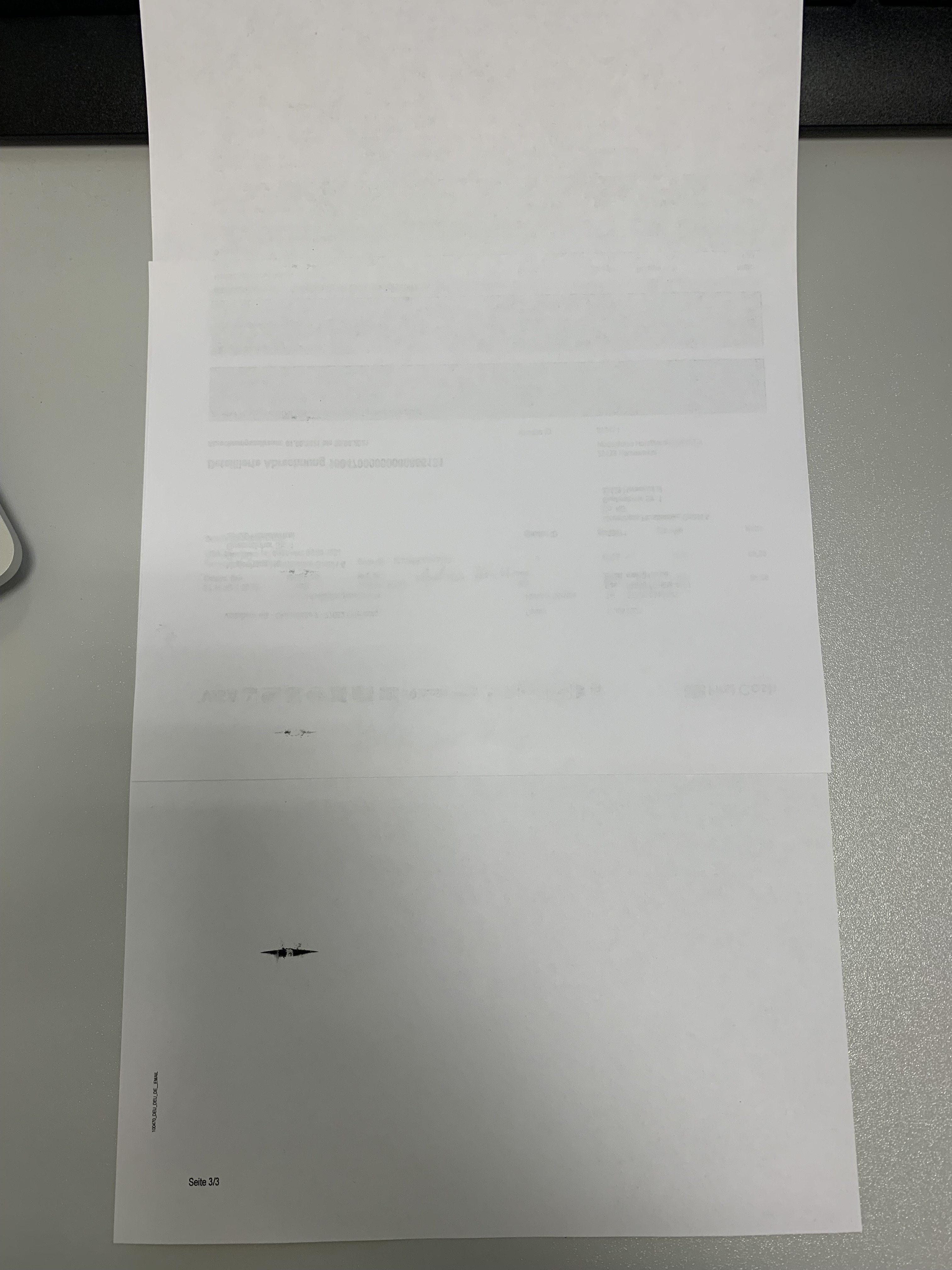 Der untere Zettel auf dem Bild ist eine Vorderseite, der obere eine Rückseite. Das Problem tritt nicht regelmäßig auf jedem Blatt an gleicher Stelle auf.
