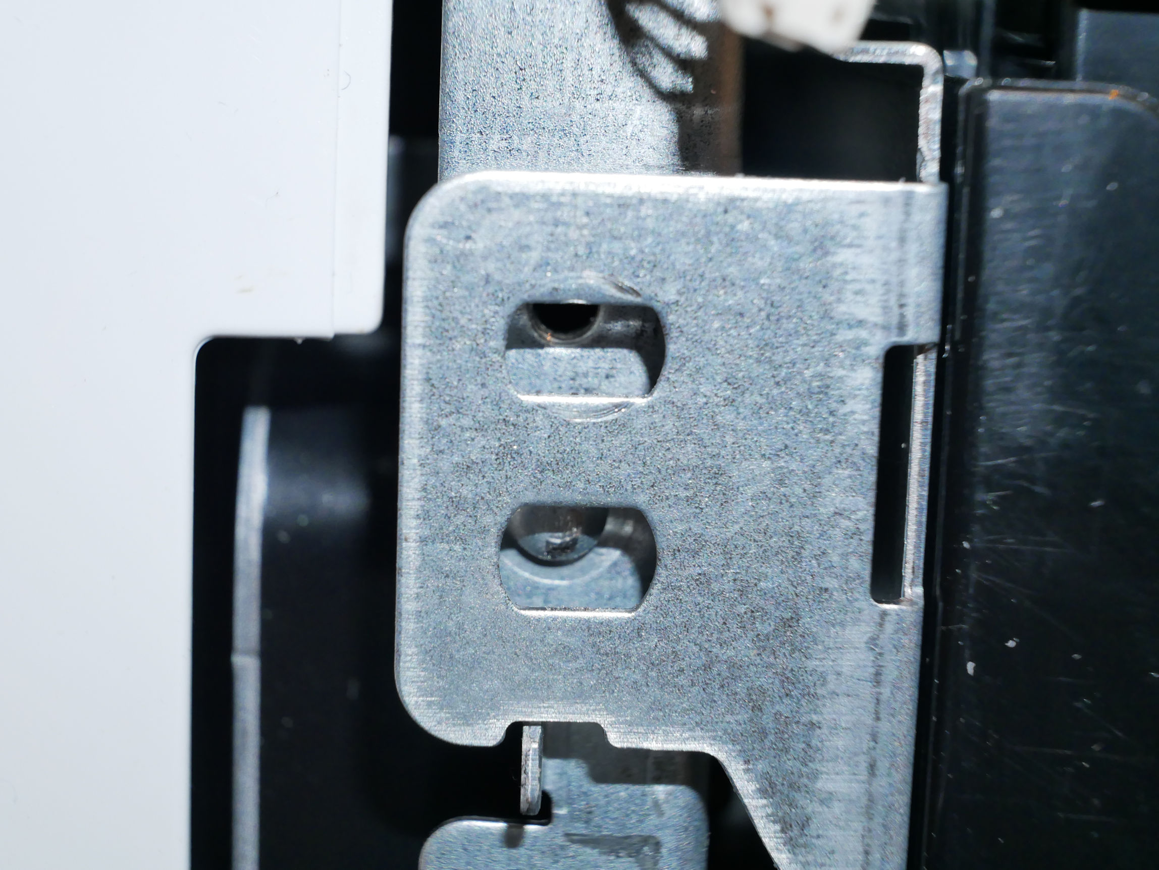 Die Fotos zeigen die klemmende Schublade sowie die rechte und linke Befestigungsseite (mit rausgedrehten Schauben)