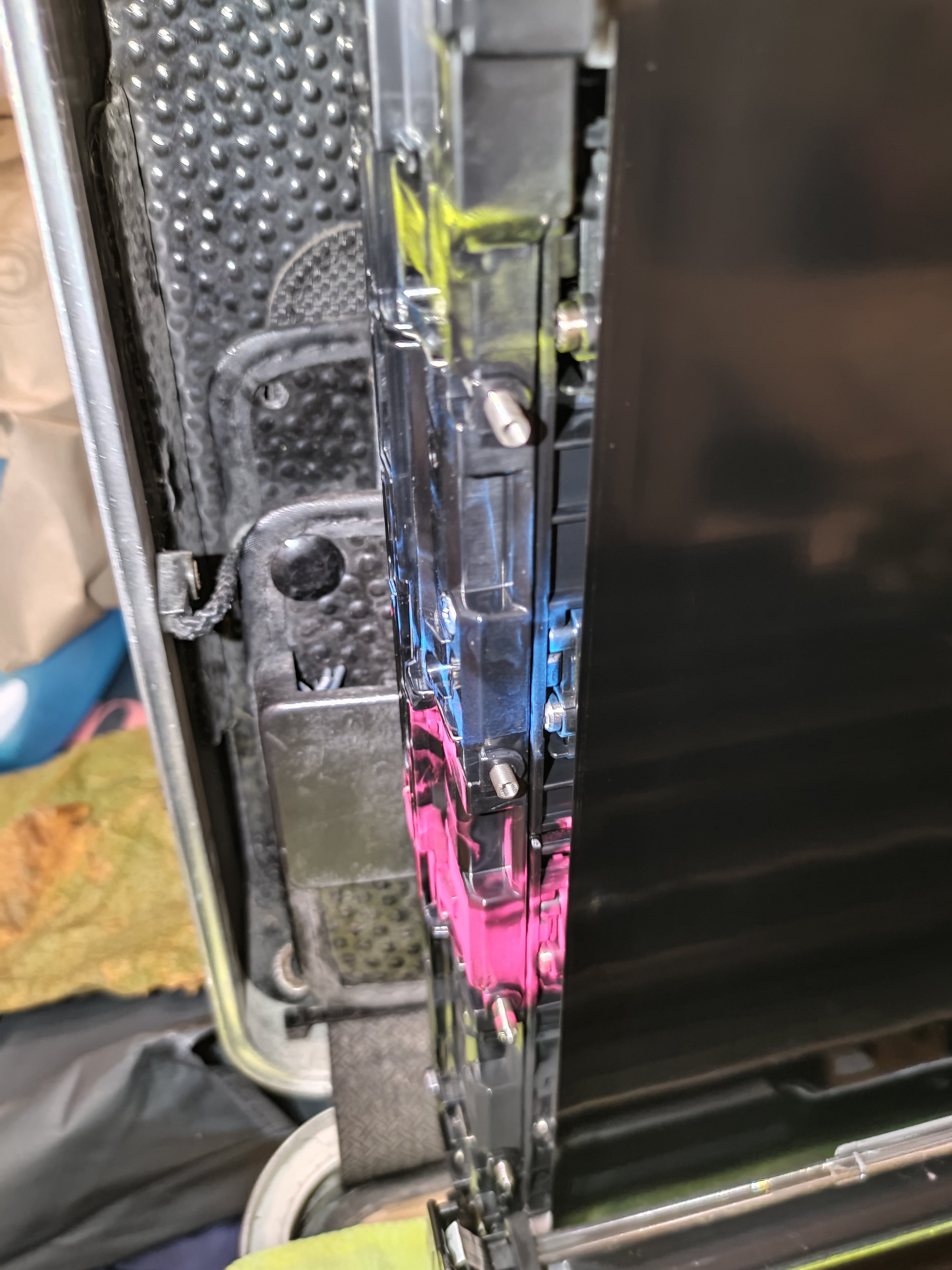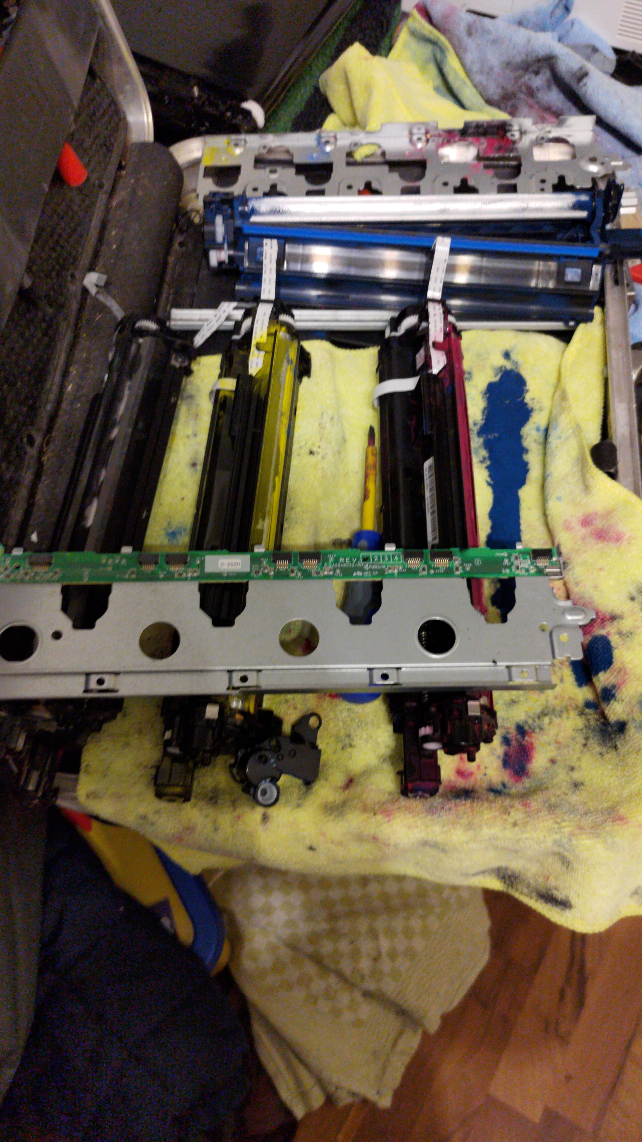 Auf den Bildern sah es ja schon ganz ordentlich aus in Sachen zerlegen . Am besten zu baust den Drucker nochmal so weit auseinander wie gestern und dann wieder stück für stück zurück dabei wie gesagt auf alles achten.