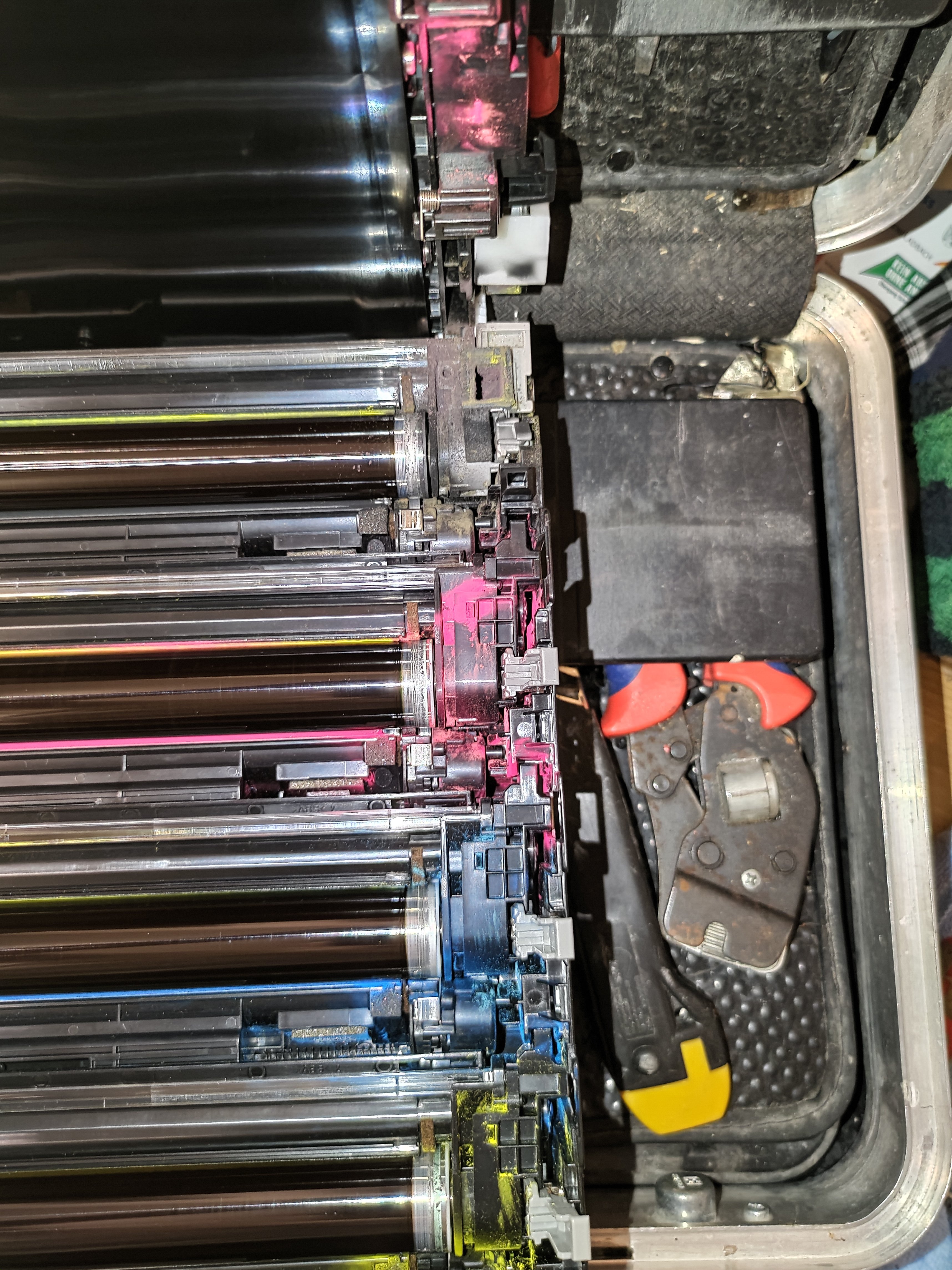 Hallo zusammen , wie ihr an den bilder erkennen könnt habe ich ein Problem mit schwarz. Habe ihr eine Idee oder Lösung für mich ? Ist voll blass . Habe schon neuen. Toner gekauft . Aber leider ohne Erfolg . Der Drucker hat ca 15000 Kopien hinter sich haben ihn denke ich günstig gekauft .