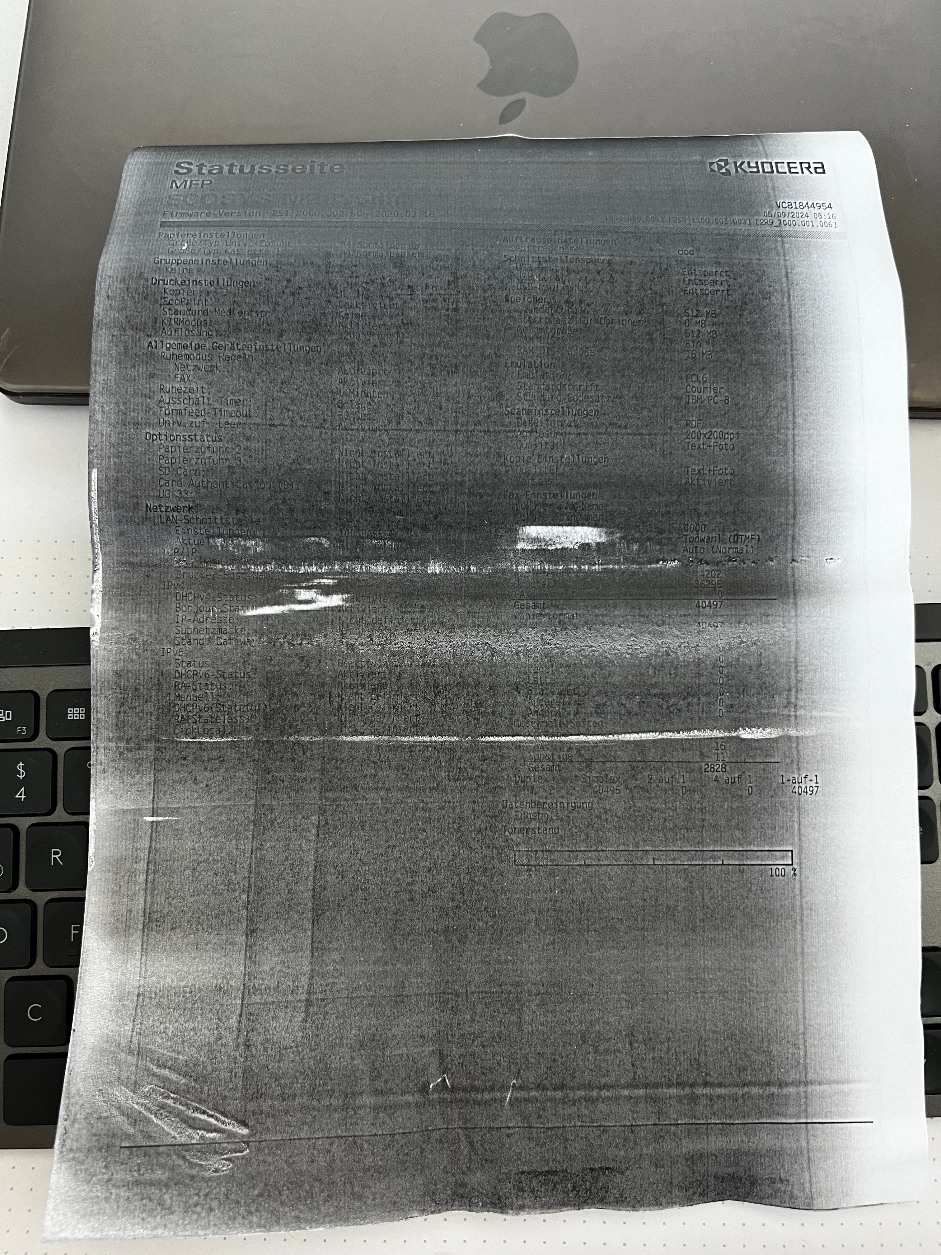 Hallo zusammen, bei dem Kyocera M2635dn wird die gesamte Seite so schwarz bedruckt und anschließend kommt die Seite halbwegs oben raus aber hängt ca. in der Mitte und es kommt Papierstau in der hinteren Abdeckung.