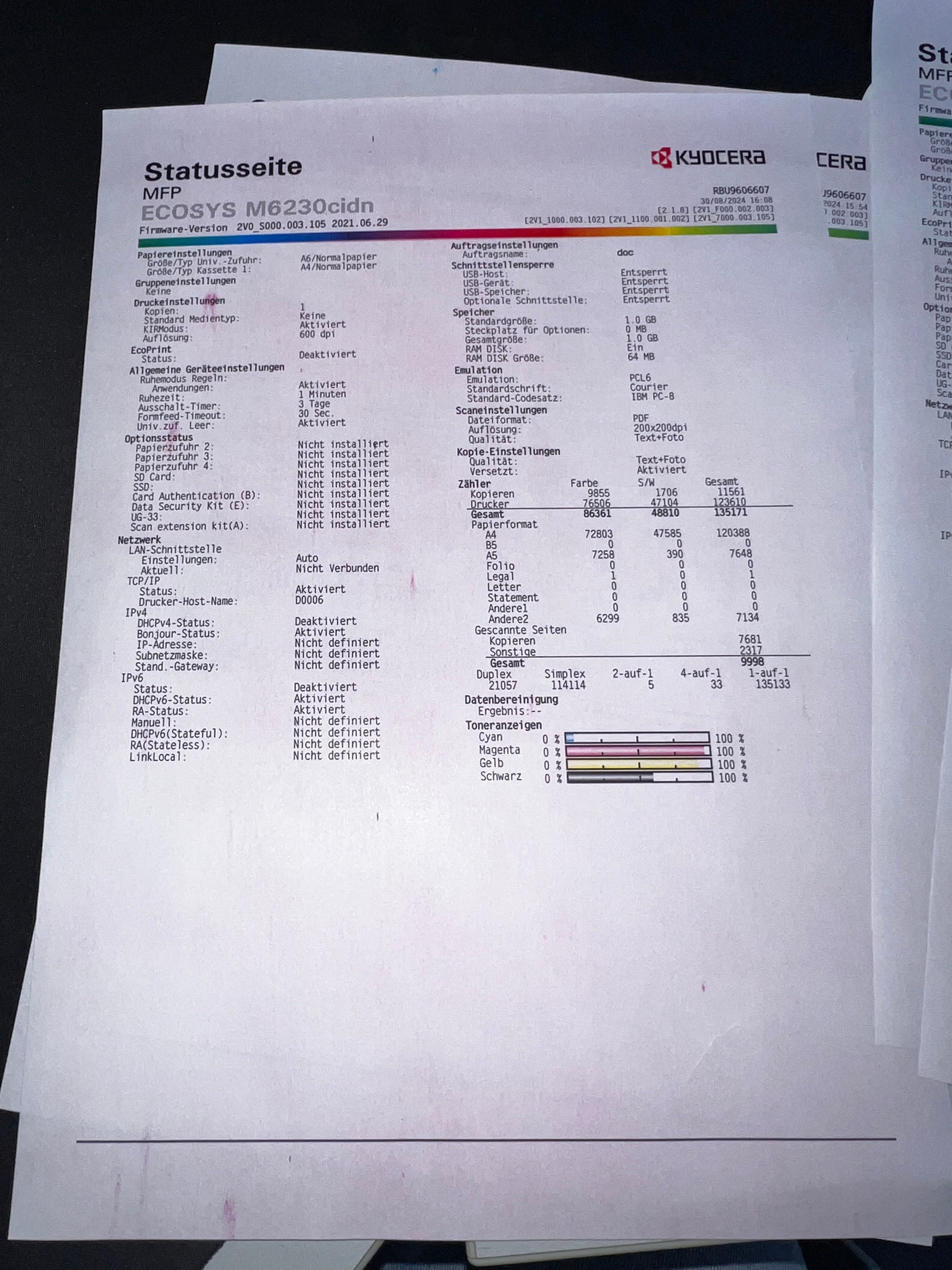Mein Kyocera M6230cidn druckt immer mit einem leichten rot/rosa Stich. Transferband habe ich ausgepustet und Laserscanner Reinigung und Trommelauffrischung durchlaufen lassen.
