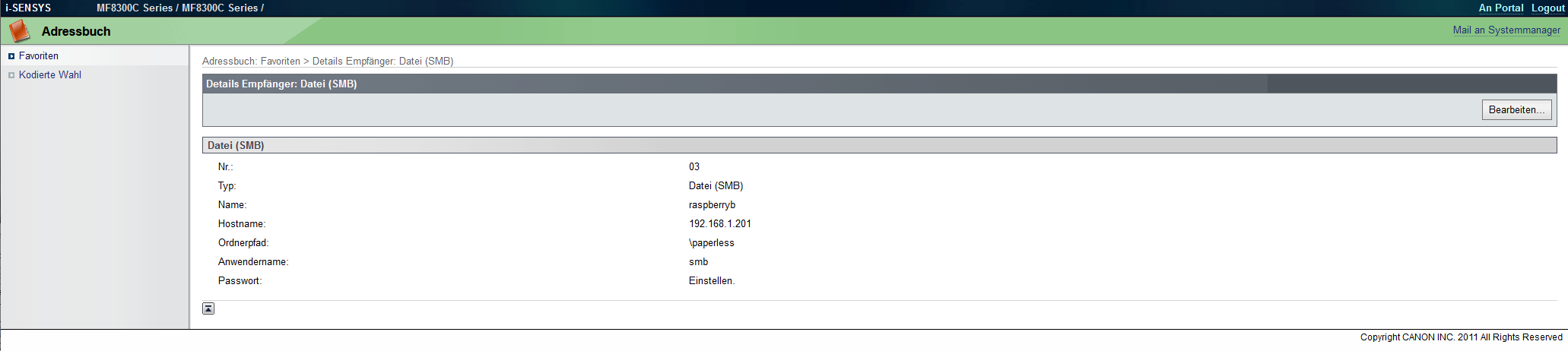Hat da wer eine Schlaue Idee warum? Ich habe den Raspi im Adressbuch des Druckers hinterlegt, auch vers. Schreibweisen probiert.