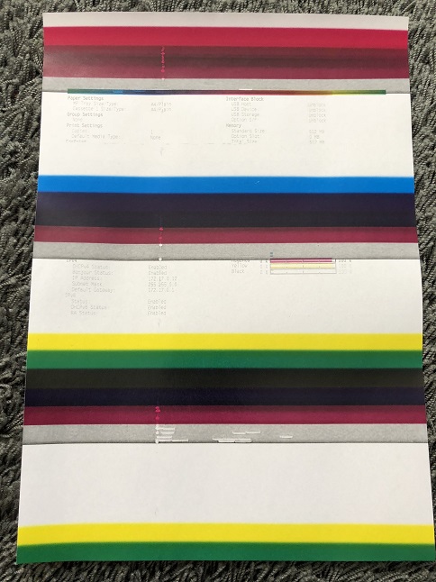 ich habe hier einen Farblaser des oben stehenden Typs und dieser Produziert sehr merkwürdige Ausdrucke, nun wollte ich mal wissen ob man vielleicht herausbekommen kann was hier defekt sein könnte? Die Fixiereinheit würde ich mal ausschließen denn das Fehlerbild entsteht ja bereits vorher und Fixiert wird es ja soweit korrekt.