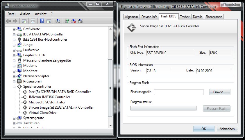 Lt. Gerätemanager ist das Bios für diesen Chip updatebar (siehe Anhang). Momentan wird ein uraltes Bios (v7.3.13) vom 04-02-2006 verwendet.