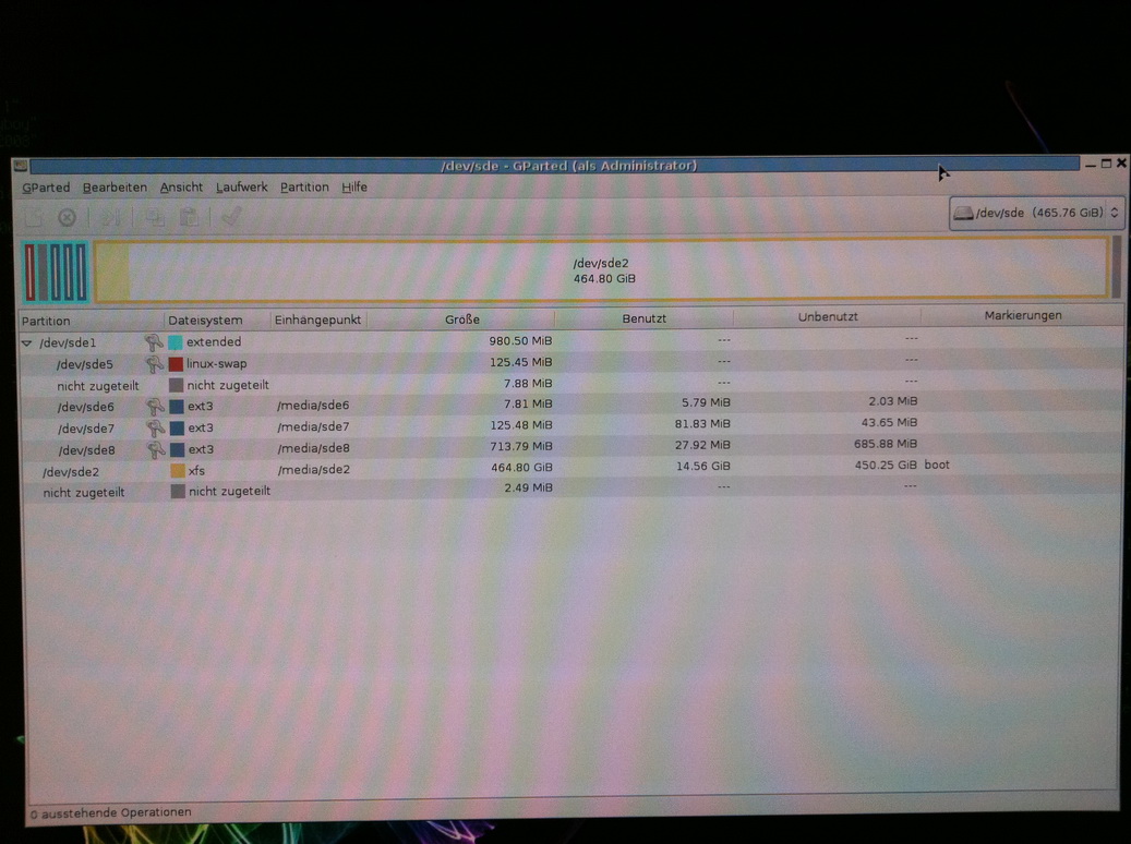 Ok, unter gParted wird folgendes angezeigt: