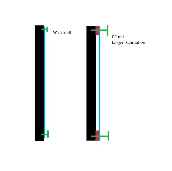 Weiß jemand, ob es längere Schrauben in der gleichen Norm gibt? Wo kann ich diese finden? Oder gibt es andere Lösungen, um die Abdeckung so anzubringen, wie ich es vorhabe?