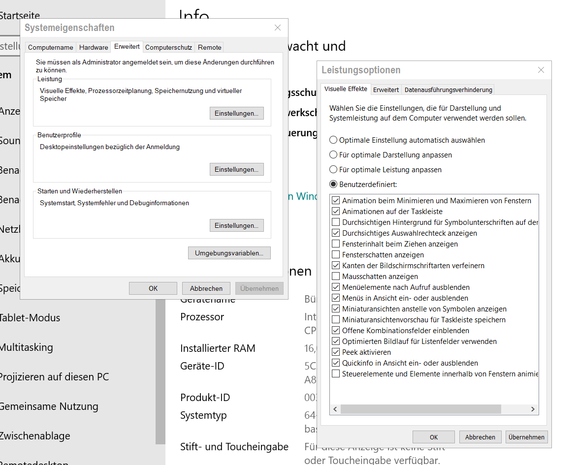 Die Aero-Funktionn habe ich ausgeschaltet, Mauszeigerschatten ebenfalls.