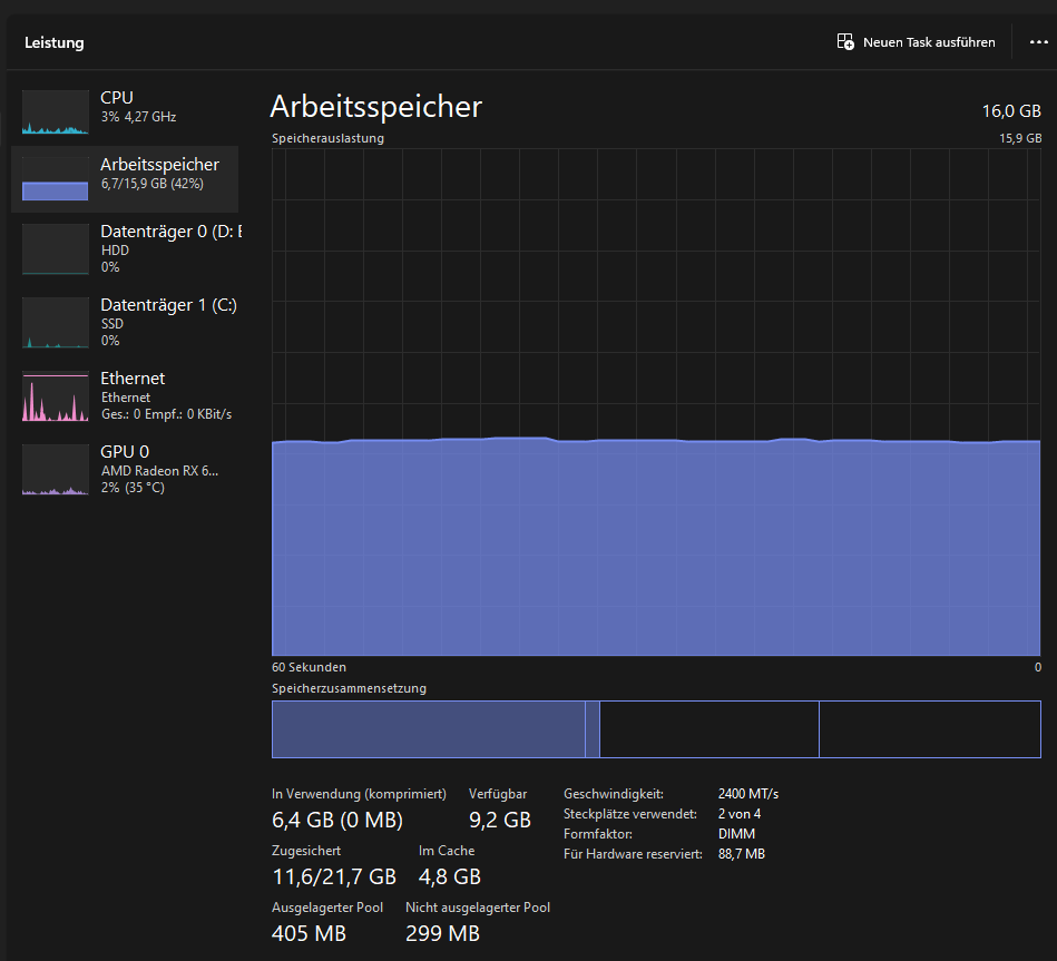 Hallo, habe Kingston DDR4-3200 Arbeitspeicher im Tasktmanger wird mir aber nur angezeigt das sie mit 2400MT laufen.