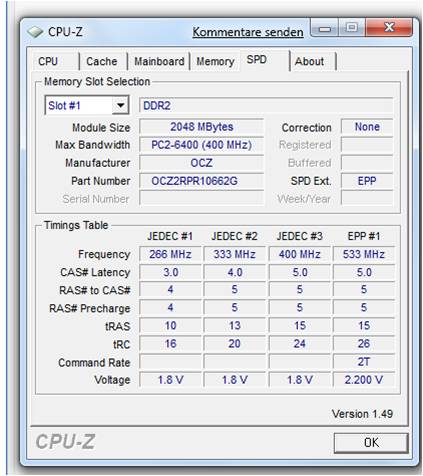 Habe jetzt mal CPU-Z installiert, da sieht man es ja oder? Hab mal ein Screenshot angehängt wie kann man die Werte da deuten? Danke Euch !!