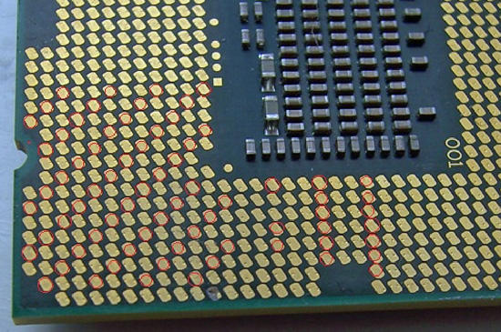 Als ich die CPU aus dem Sockel genommen habe, löste sich eine Kontaktfläche auf der Rückseite der CPU, ich entdeckte erst ein kleinen Fremdkörper in den Pins, dachte an einen Fussel oder sowas, ganz vorsichtig aus den Pins gefummelt und im Licht entdeckte ich, dass es glänzt...
