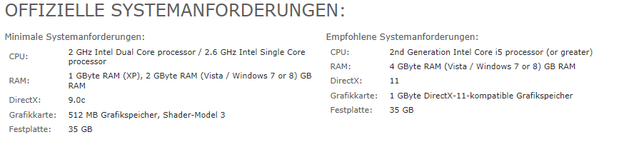 Woow.. danke für die Systemanforderungen, die stimmen bei fast keinem Spiel, wollte das mir jemand ne Antwort gibt und nicht die Systemanforderungen reinpostett, die kann ich auch bei Amazon nachlesen, aber wie gesagt die sagen nix aus xD