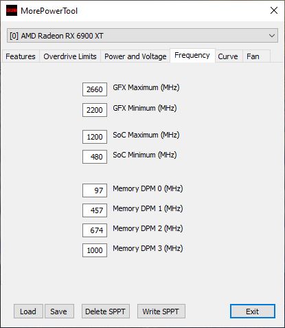 GFX Clock min und bei Frequency GFX Mini