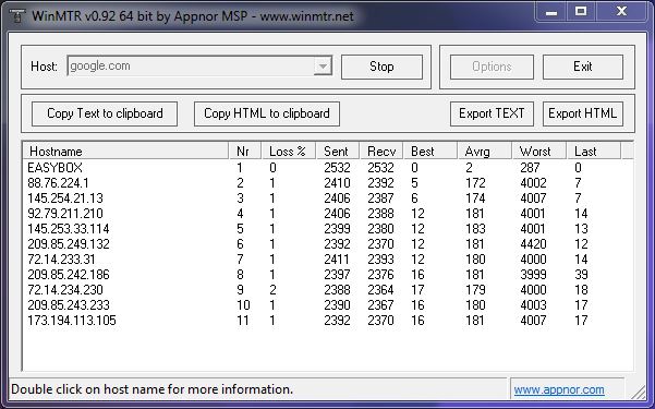 - Traceroute/Ping Tests um Paketverlust zu testen, liegt bei ca. 1-2%, wobei 0% zum Router (http://i.imgur.com/0X53QN2.jpg)