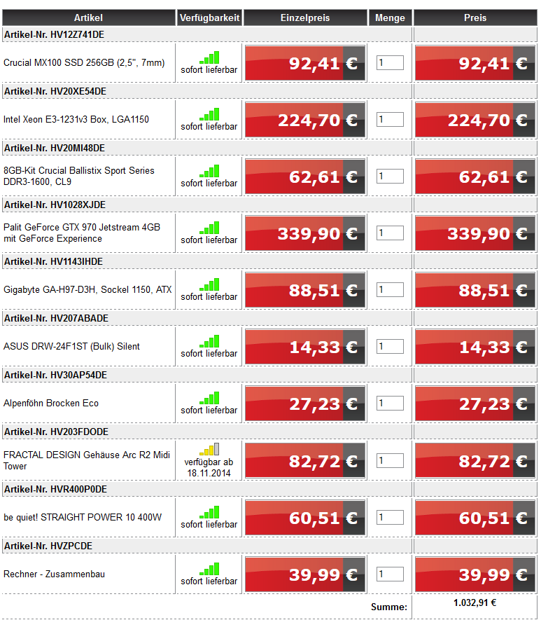 Das müsste dann vom Preis in etwa so aussehen: