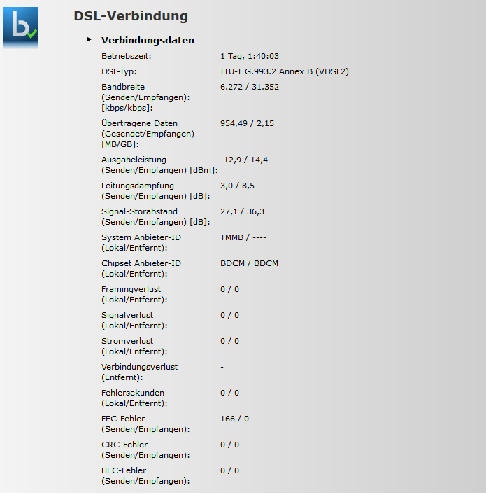 Anschluss ist Dsl 30Mbit