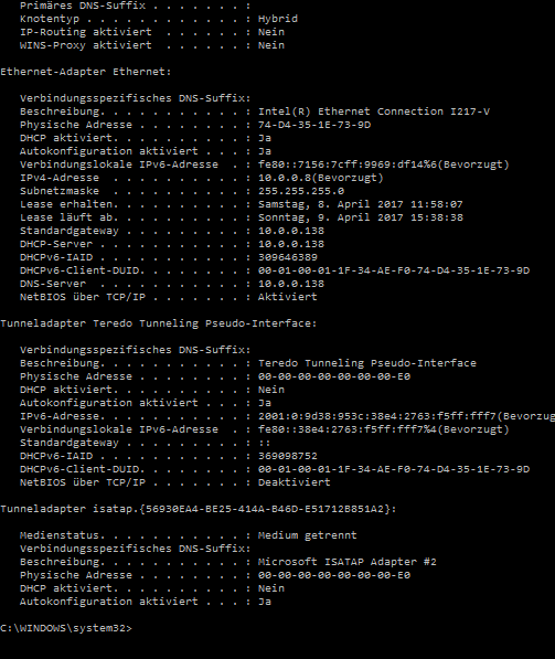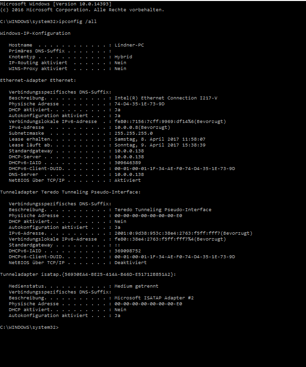 Hier meine ipconfig
