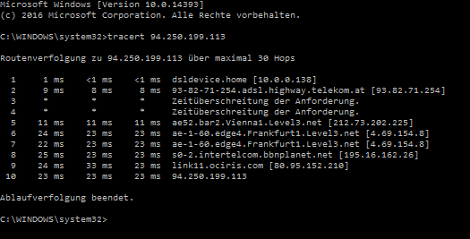 Routenverfolgung zu einem bf4 server auf dem ich spiele: