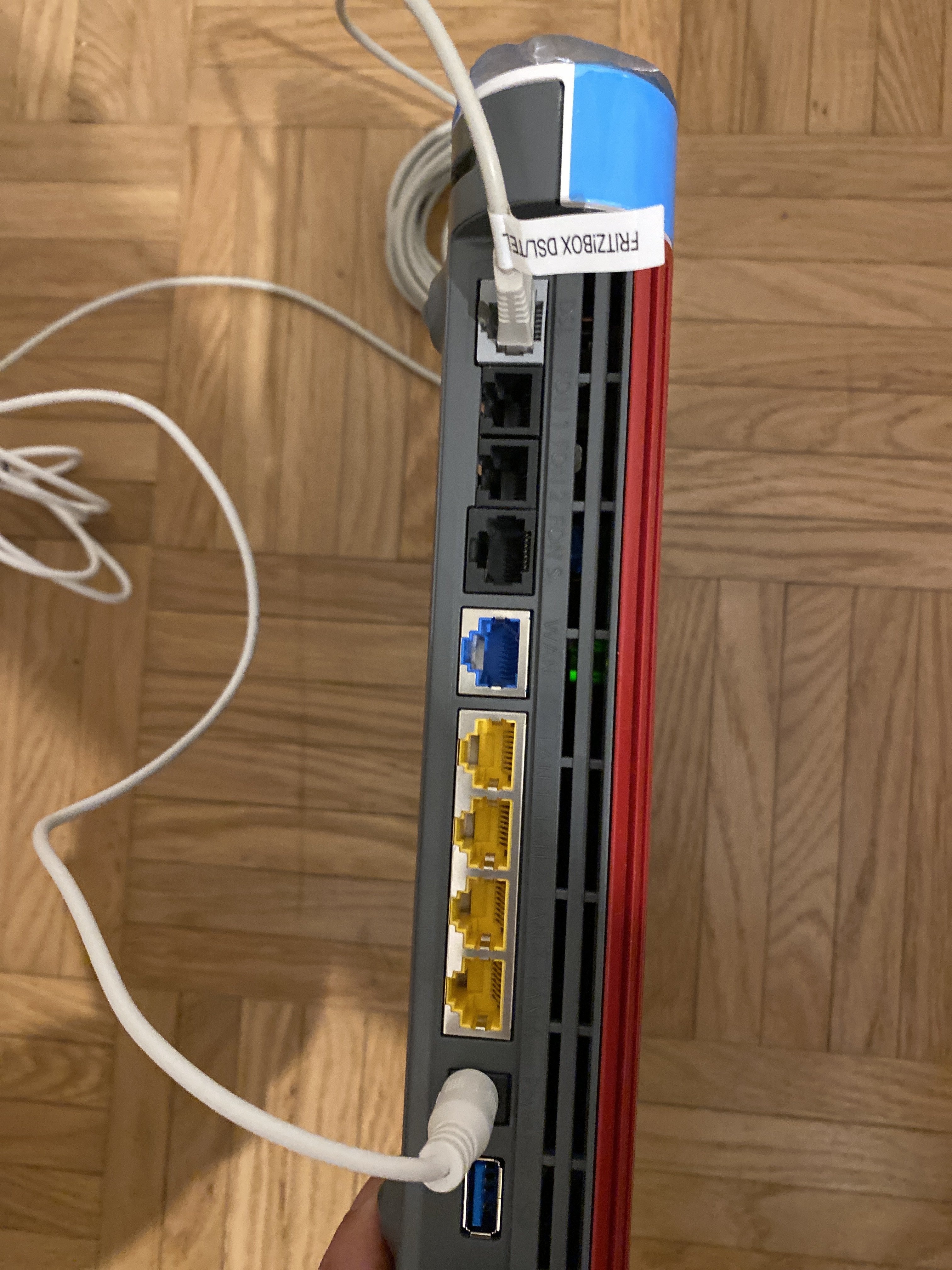 Ich dachte auf deinen Bilder mit der Fritzbox, dass du da die Kabel ausgesteckt hast, nicht, dass du das wirklich so verkabelt hast.