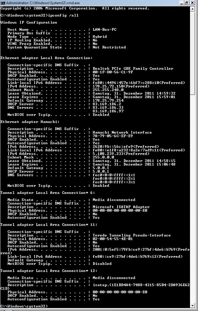 ich denke auch das sich die DHCP Dienste da etwas bekriegen, ich gehe nun einfach mal davon aus das du noch nie etwas an der Netzwerkkarte umgestellt hast weder im Ip Bereich noch sonst irgendwo.