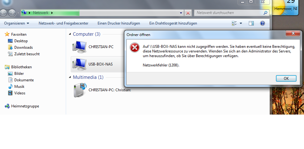 jetzt wollte ich über LAN in der Festplate rein leider kein erfolg bei Win7 Home 32