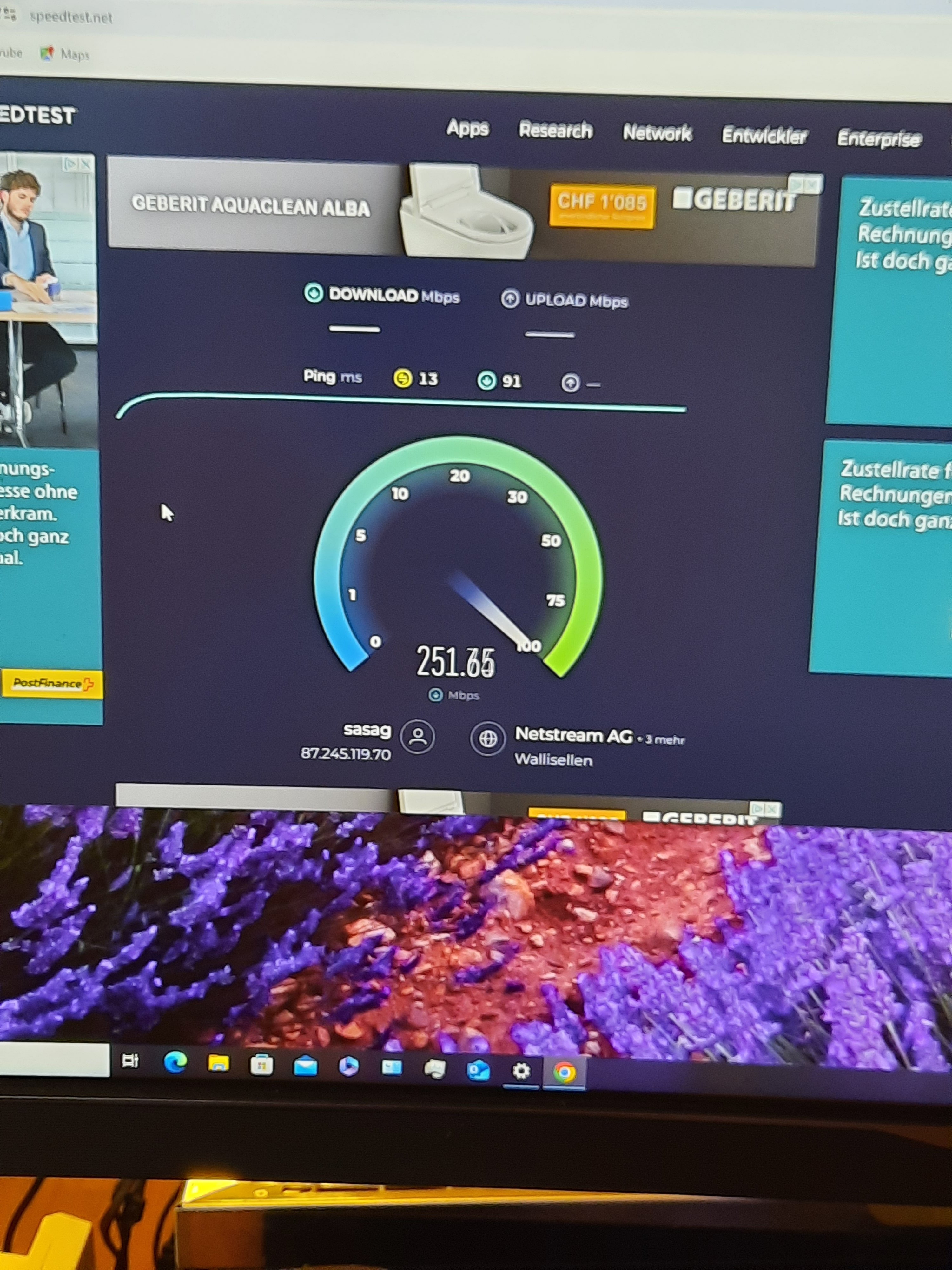 So also hier ein paar Bilder. Habe ein kabel trocken verlegt mit 2 Dosen im Crossover jeweils mit cat6 Kabeln zum Router und zum PC. Internet ist glasfaser