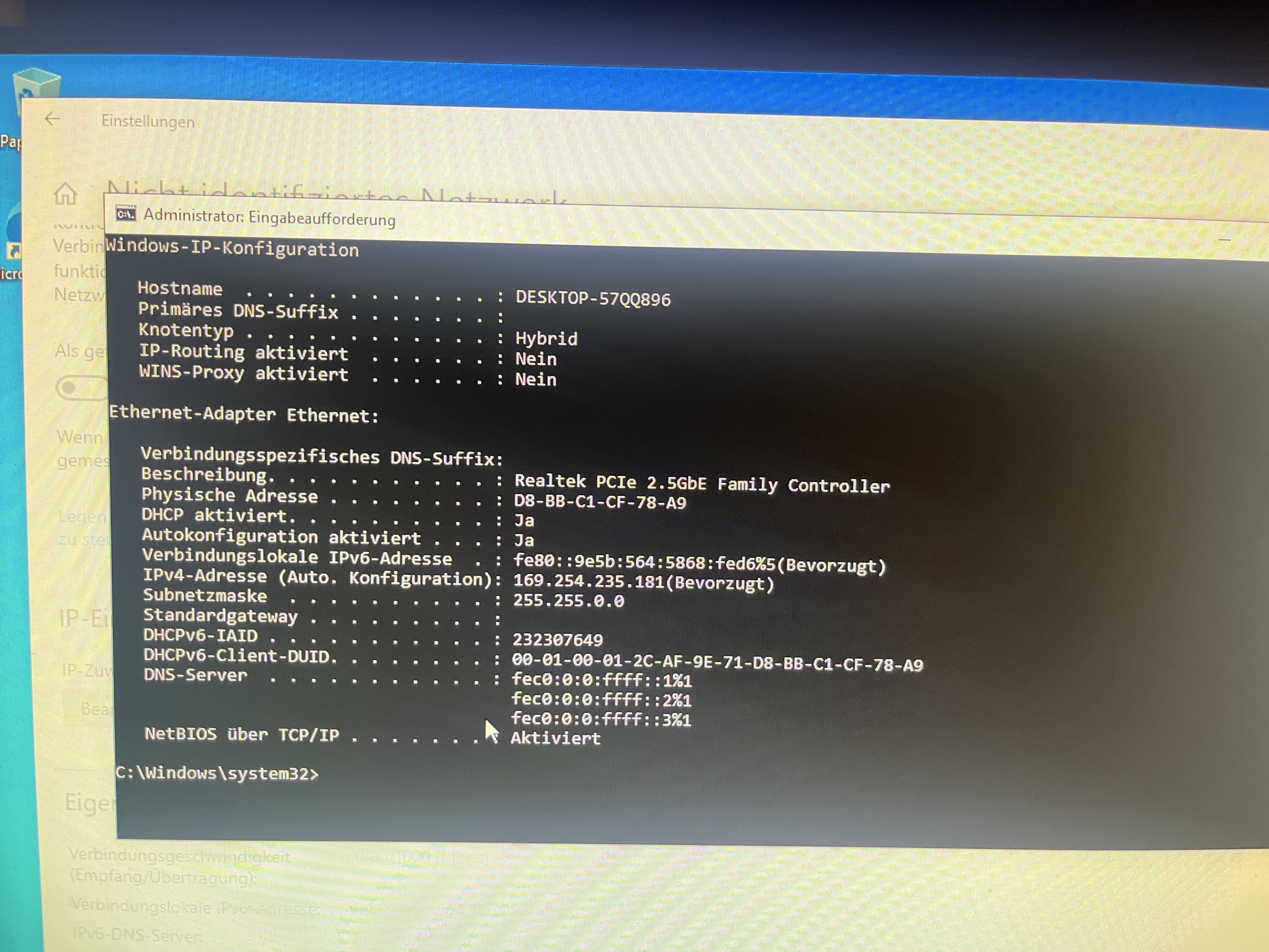 ich bin vor einer Stunde damit fertig geworden meinen neuen PC zusammen zu bauen. Der erste Start und alles weitere hat reibungslos geklappt, Windows wurde offline per Stick installiert. Jedoch nun folgendes: Das Mainboard bringt nur LAN, aus diesem Grund das Kabel direkt nach der Einrichtung angeschlossen. Jedoch funktioniert überhaupt kein Internet. Immer die Fehlermeldung: ethernet verfügt über keine gültige ip konfiguration. Diverse Videos im Internet über das zurücksetzen und automatische Einrichten der IP über CMD blieben ohne Ergebnis.
