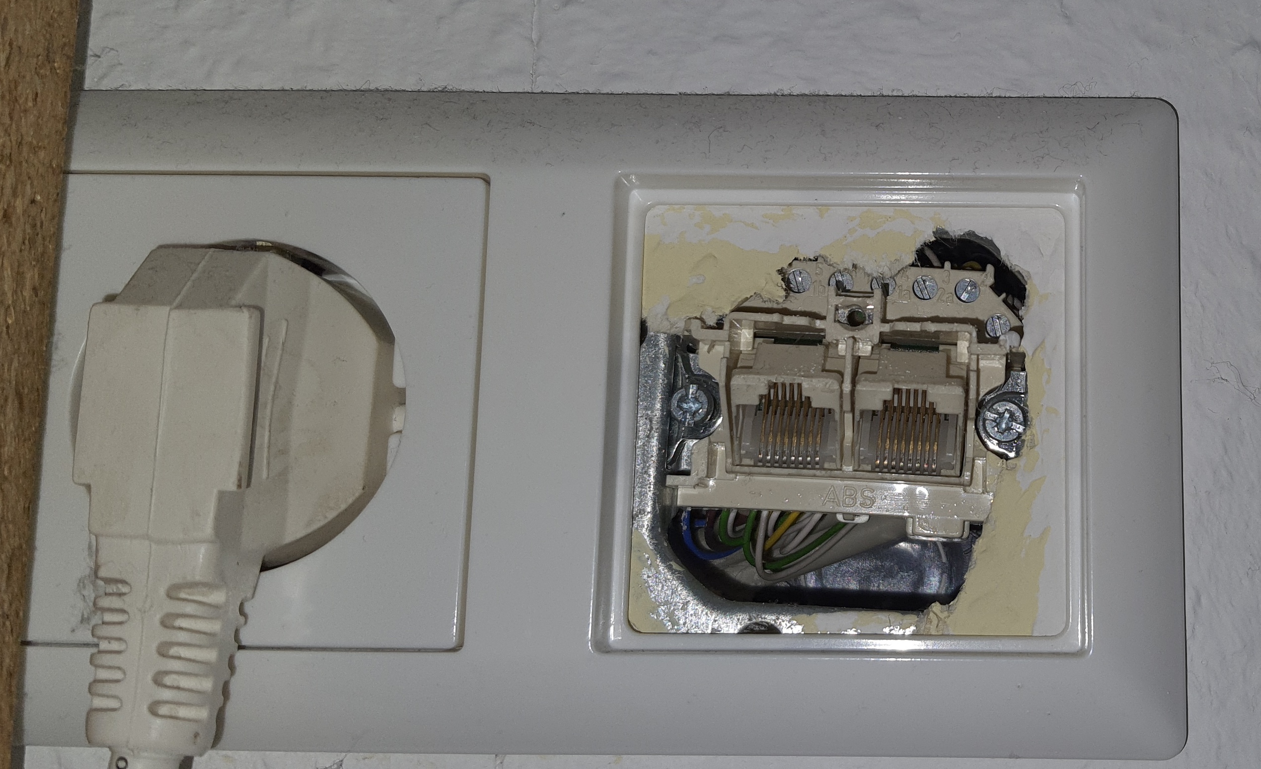 Ich hatte nun heute ein Notebook genommen und per LAN mit dieser Doppel-RJ45 im Wohnzimmer verbunden und mal geschaut, ob ich darüber eine Verbindung bekomme...das Kabel im Port 22 im Foto führt zum WAN der FB.