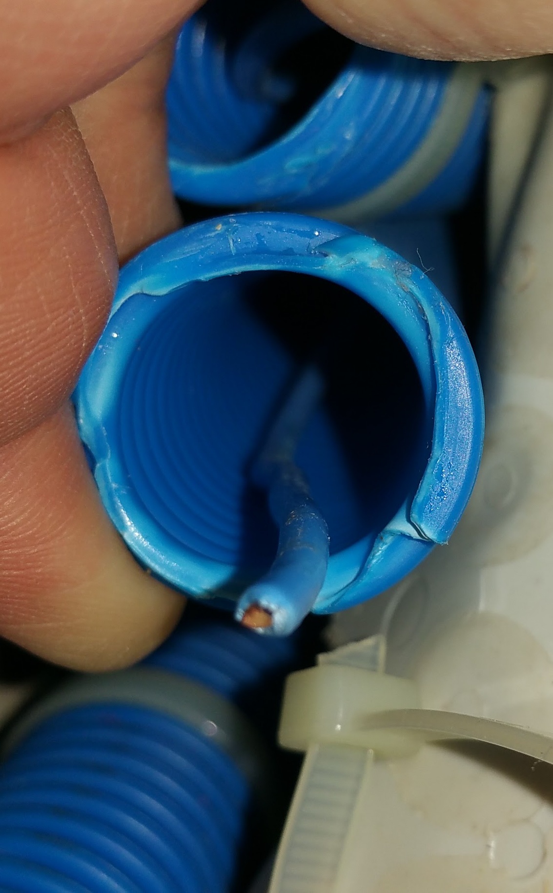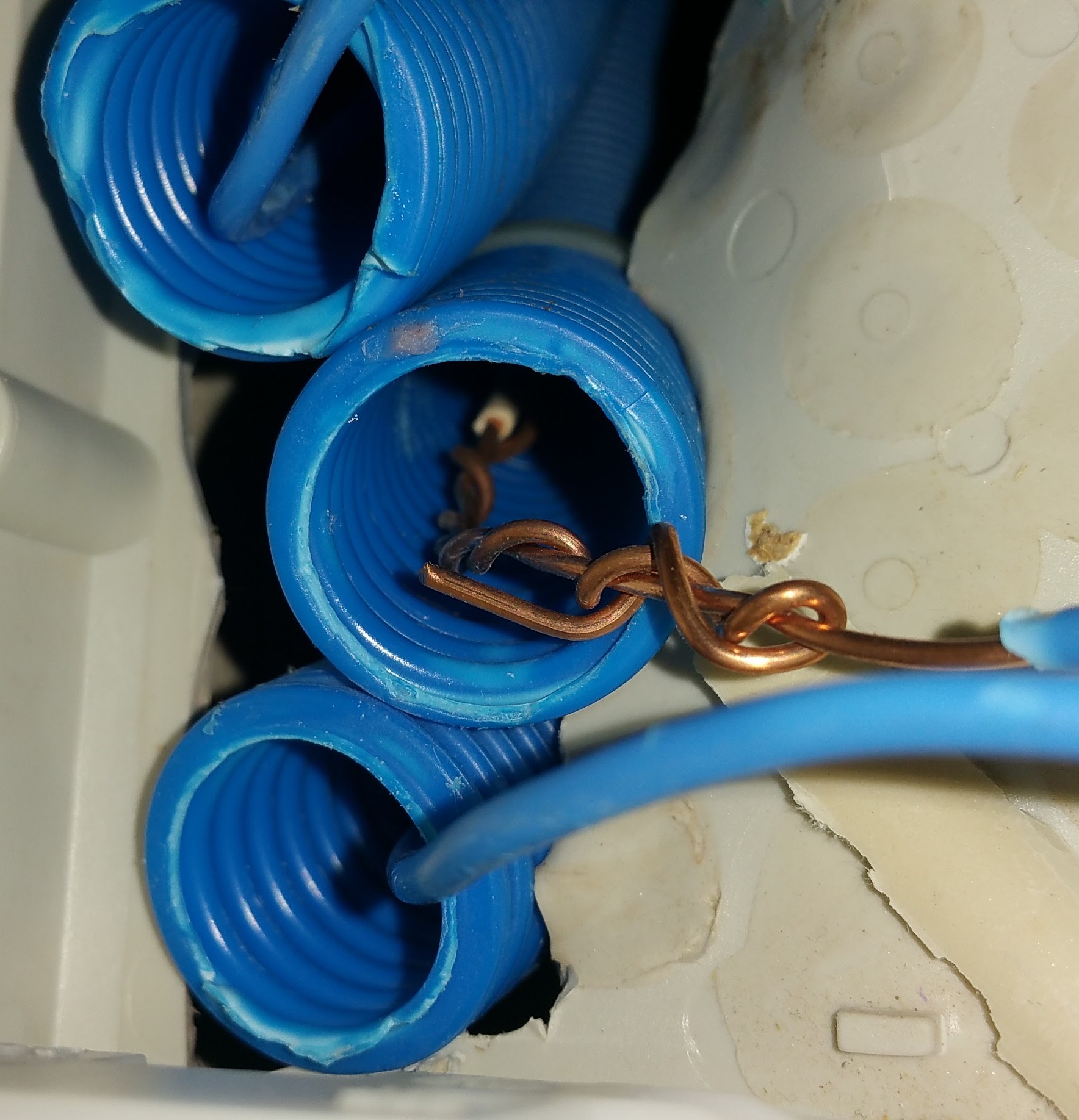 An den Rohrenden schauen auf beiden Seiten Eletrodrähte raus. Fein hab ich gedacht, da haben die Handwerker überlegt und bereits etwas ins Rohr gelegt um, damit ein Kabel durchzukriegen. Nachdem ich das Kabel am einen Ende befestigt hab und am anderen Ende zog, passierte leider gar nix